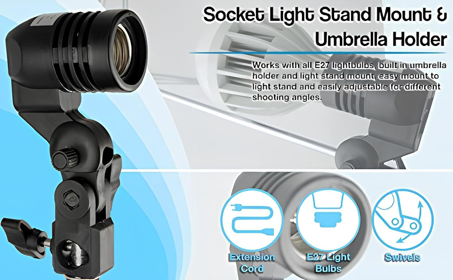 E27 socket lamp bulb holder,can be mounted on any standard light stand.