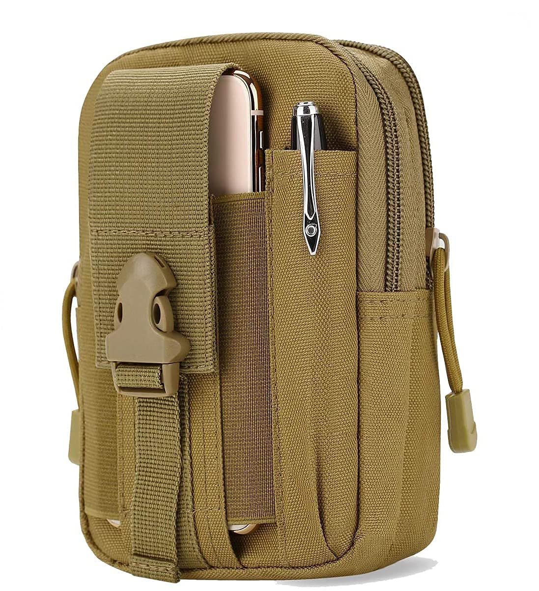 - This belt purse is very safe and flexible. The front buckle can securely protect the cell phone from dropping. The two zipper bags can organize small things and keep them safe from sliding out. It serves good as a tactical phone pouch, belt waist pouch, gadget pouch, utility belt pouch, outdoor hiking pouch, camping trekking belt purse or travel security pouch.