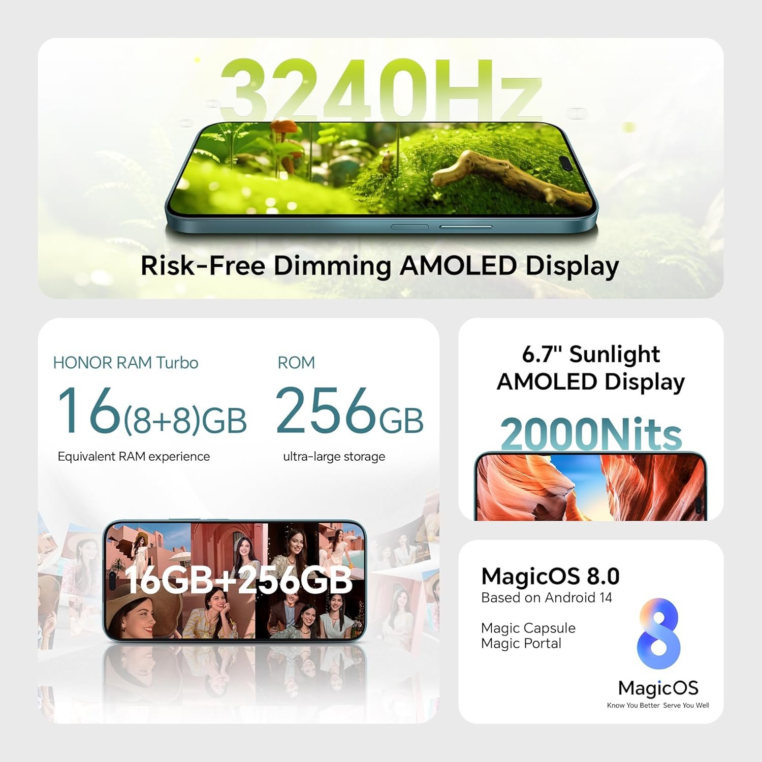 AI-powered MagicOS 8.0 based on Android 14: Magic Capsule – Seamlessly integrating notifications | Parallel Space – Effortlessly switch between work and personal life | Smart AI Features – Magic Portal for quick access, AI-powered photography, instant movie creation, Magic lock screen