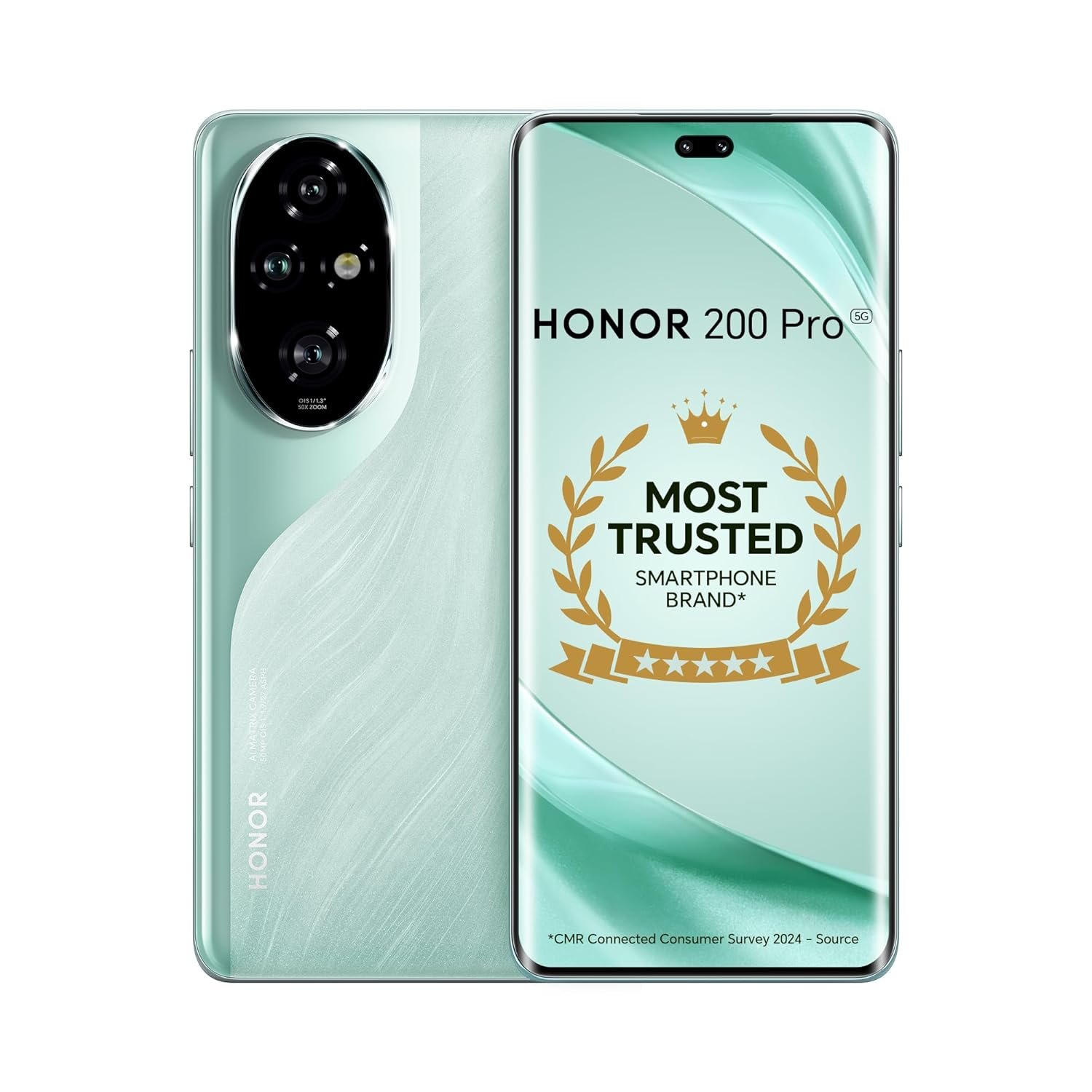 HONOR 200 Pro 5G (Ocean Cyan, 12GB+512GB) | 6.78-inch AMOLED Quad-Curved Display | Dual OIS 50MP+50MP+12MP Camera | 50MP Selfie Camera | Snapdragon 8s Gen 3 | AI-Powered MagicOS 8.0 | Without Charger