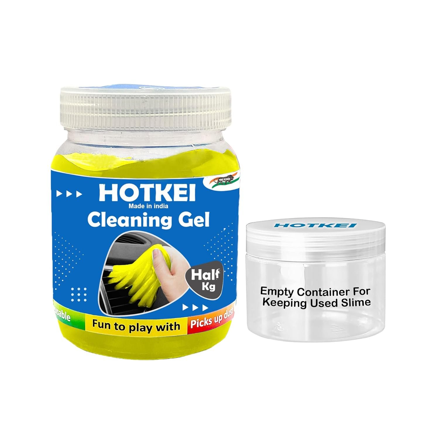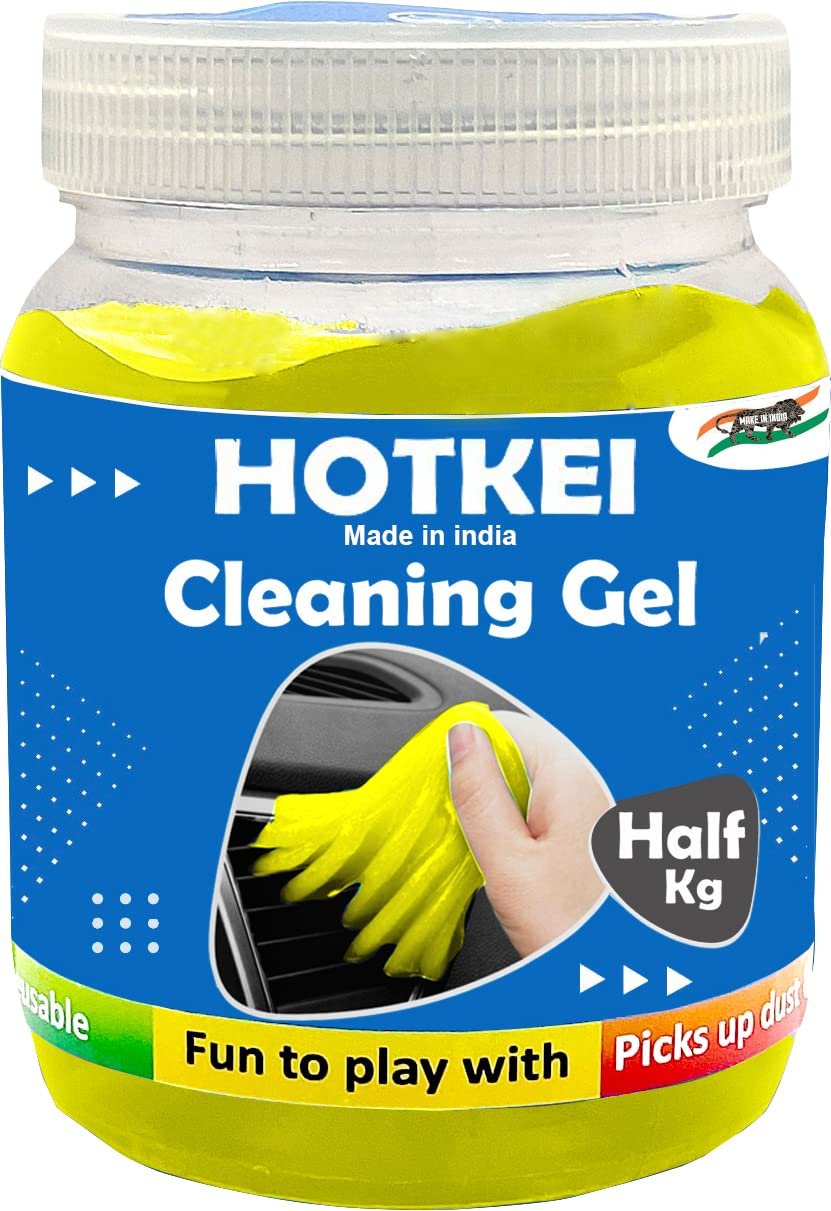 HOTKEI lemon Scented Half Kg Multipurpose Car Interior Ac vent Keyboard Laptop Dust Cleaning cleaner Kit Slime Gel Jelly For Car Dashboard KeyBoard Computer Electronics gadgets (500gm) GREAT CAR KEYBOARD DUST SLIME CLEANING KIT – A MUST AND USEFUL ITEM FOR YOUR LIFE AND FAMILY.This keyboard Laptop cleaner kit with LEMON SCENT will easily and quickly remove dust, hair, debris in the crevices from car dashboard vents, gear shifts, knobs, door handles, air vents, CD slots, cup holders, keyholes, USB ports, laptop keyboards, electronics, TV remote controls, air-condition dust screen, fans, and mechanical devices. With the help of keyboard cleaning gel you can also clean your keyboard, mouse, calculator, screen, game controller, fan frame, car outlet, and more with this universal dust cleaner gel. Applicable to gaps that are difficult to reach. HOW TO USE:1.Wash and dry your hands before use;2. Before using it, gently squeeze it into a specific shape;3. Remove by pressing for about 5-10 seconds, please do not leave the cleaning gel on the surface of the object for a long time.4.Gently push the cleaning gel against the surface to be cleaned and pull it out slowly, the dust will be carried away with auto detail gel. Note:- Do not eat.- Do not wash with water.- Avoid direct sunlight and store it in a dry place.- Please do not leave the cleaning gel on the surface of the object for a long time.- DO NOT USE THIS GEL ON Carpets, Fabric, Cloth! Specification:Product name: Lemon Scented Car Detailing Cleaning GelPackage Included: Half Kg (500 gm) Cleaning GelColor: Yellow Weight: 500 gms