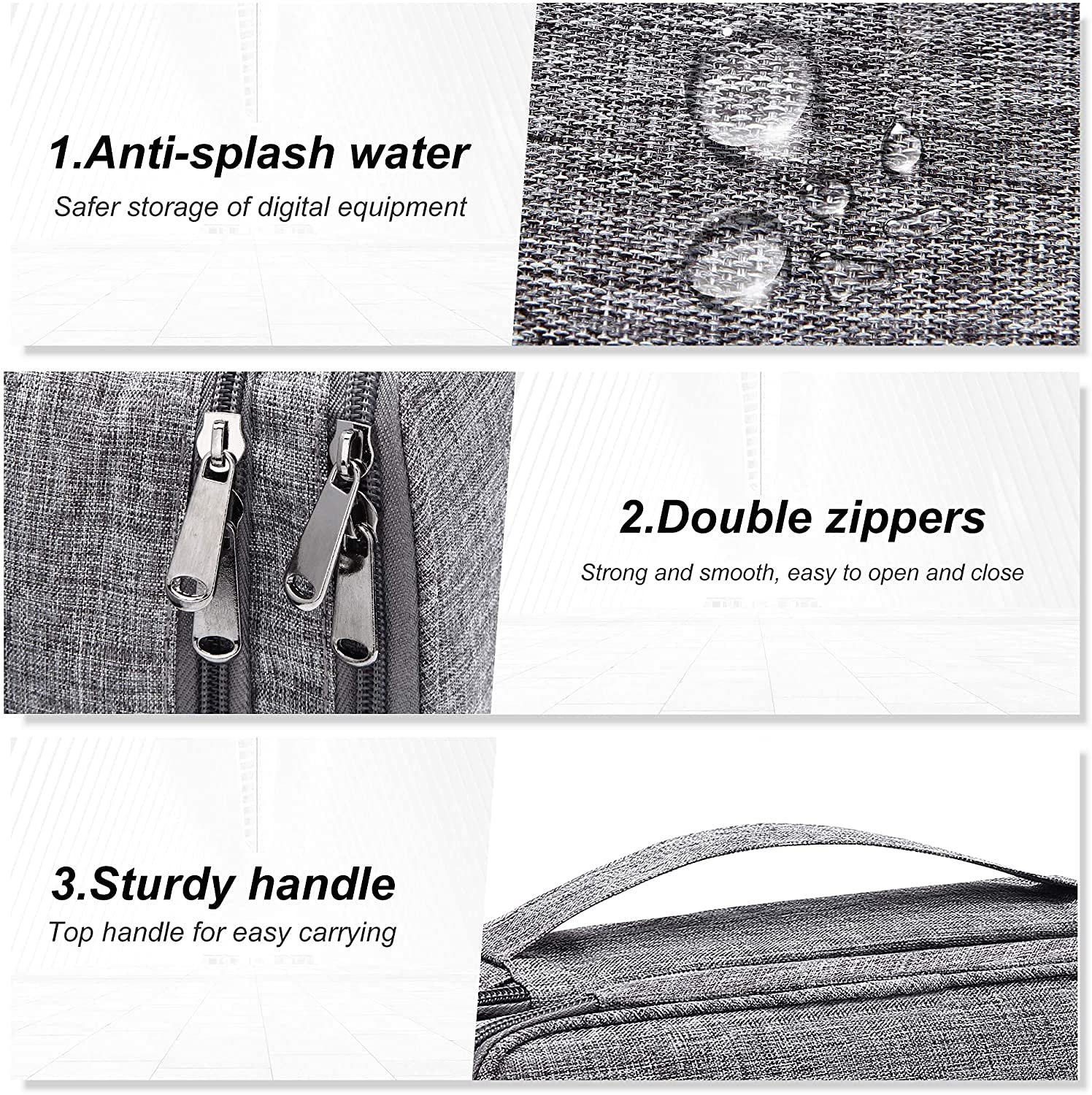PREMIUM MATERIAL: This electronics organizer is made of water-resistant and durable cation material, can protect your electronic accessories against spills, rains, dust, and scratches. Other eminent features include a strong carrying handle and smooth zipper closure for ease of use, safety and security. This travel cord organizer bag is very strong and durable. All the things inside are protected very well.