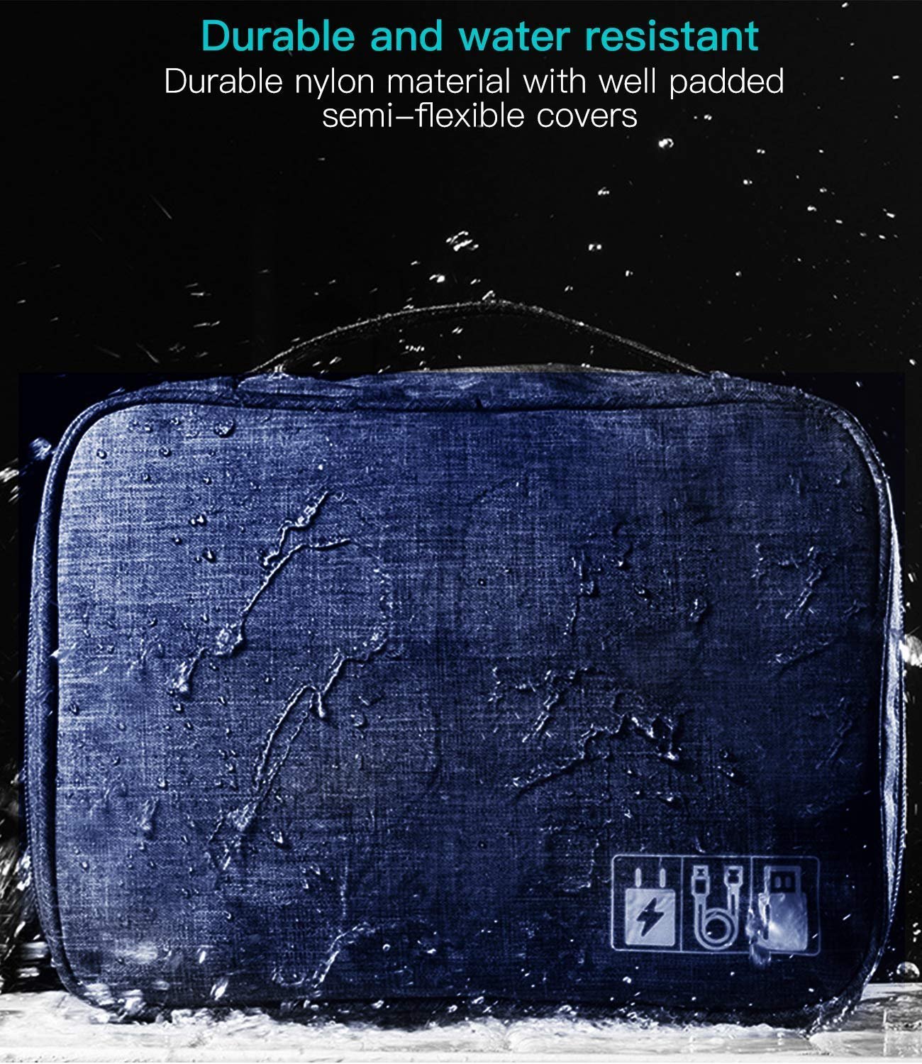 Made of heavy-duty, 300D durable and waterproof nylonTravel Electronics Accessories Bag Organiser for Cables, USB drive, Charger, Power Bank, Flash disk, Headphone and iPad Mini.