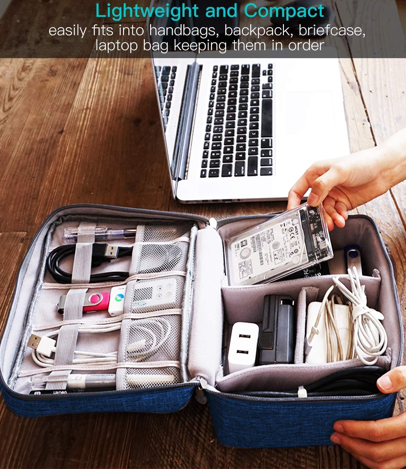 Superior Quality Travel Electronics OrganizerEasy to Use & Wash, Portable & FoldableCompact & LightweightConvenient Compartments
