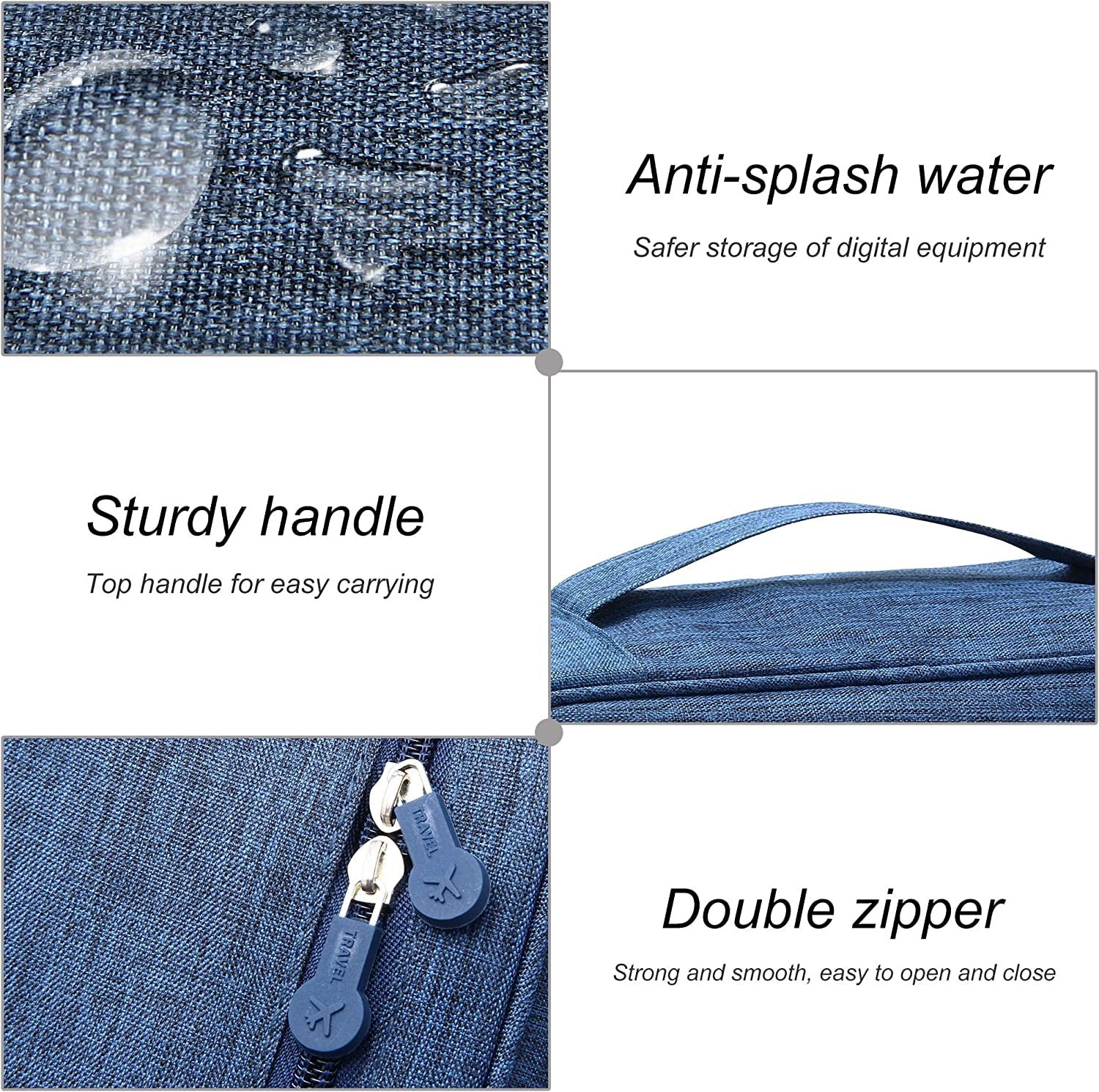 Shockproof & Waterproof – This organizer bag is made of dual layer waterproof fabric and shockproof material. All items in this bag are well protected. The high quality zippers are strong and durable.