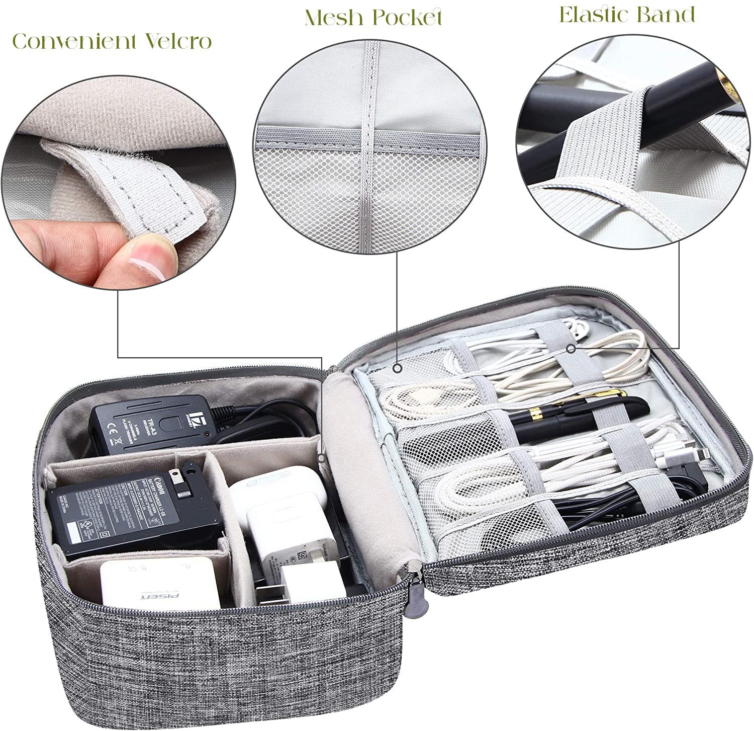 Keep everything in one place – This travel electronics organizer bag helps you keep all your electronics accessories and various cables together. Size: 24.5 cm x 18.5 cm x 10 cm, ideal size fits easily in your luggage.