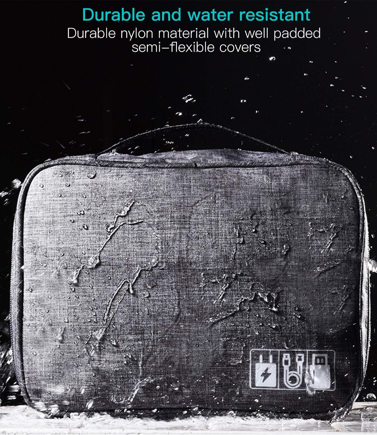 Made of heavy-duty, 300D durable and waterproof nylonTravel Electronics Accessories Bag Organiser for Cables, USB drive, Charger, Power Bank, Flash disk, Headphone and iPad Mini.