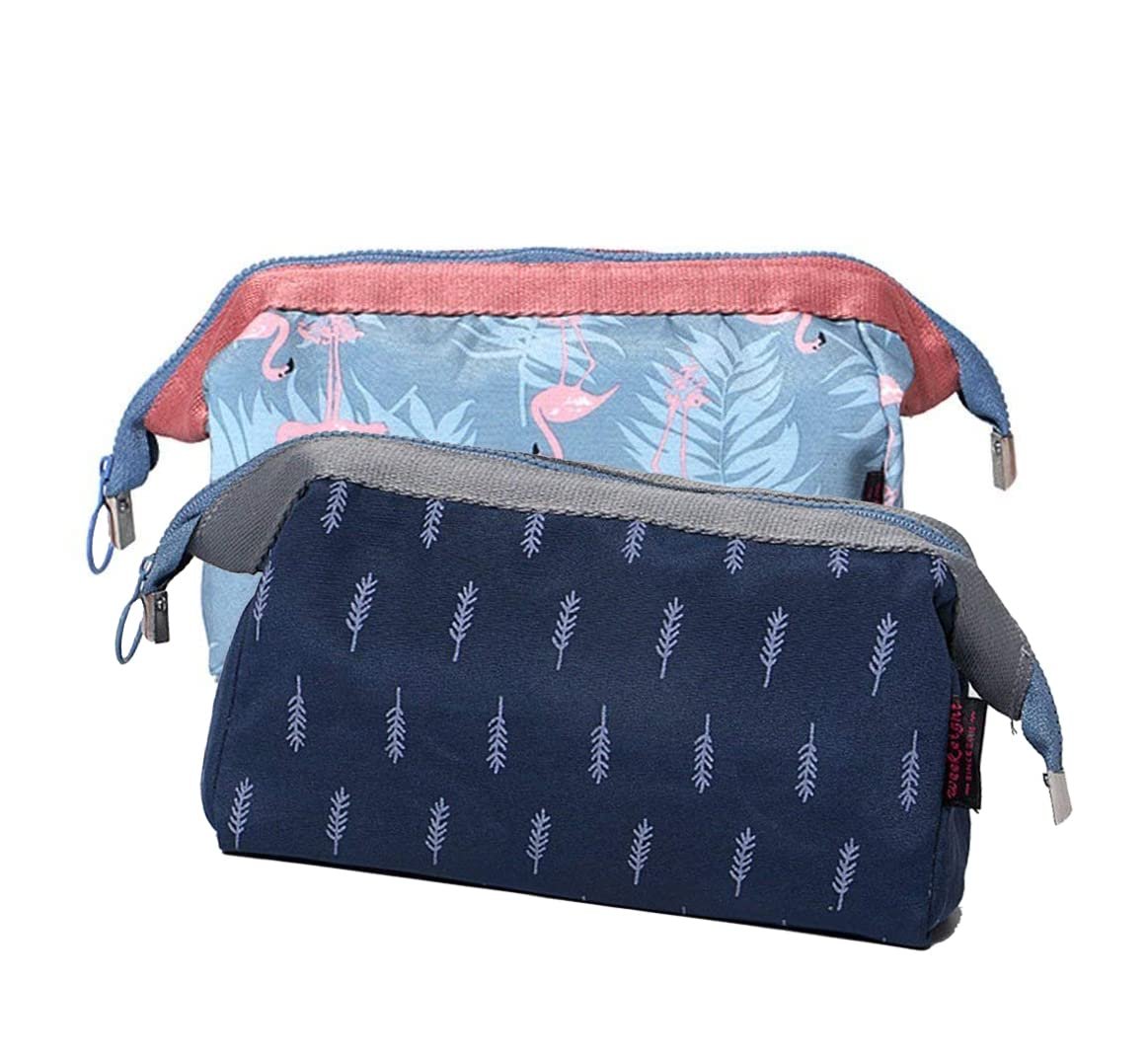 House of Quirk Toiletry Kit Women Jewelry Organizer Electronics Accessories Hard Drive Carry Case Portable Cube Purse (Set of 2, Blue Leaf/Grey Flamingo)