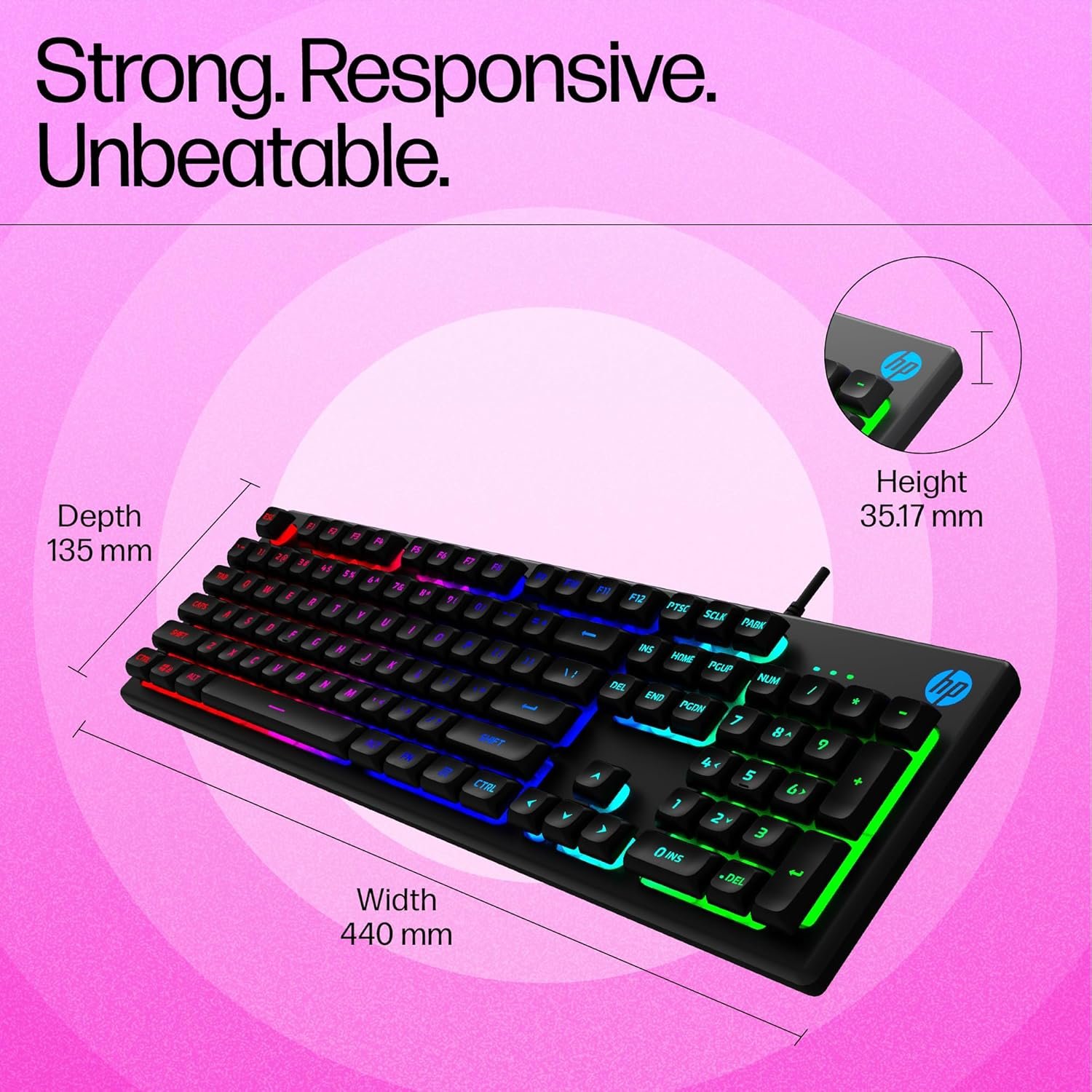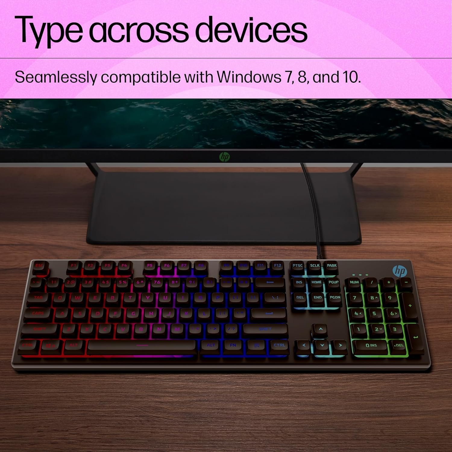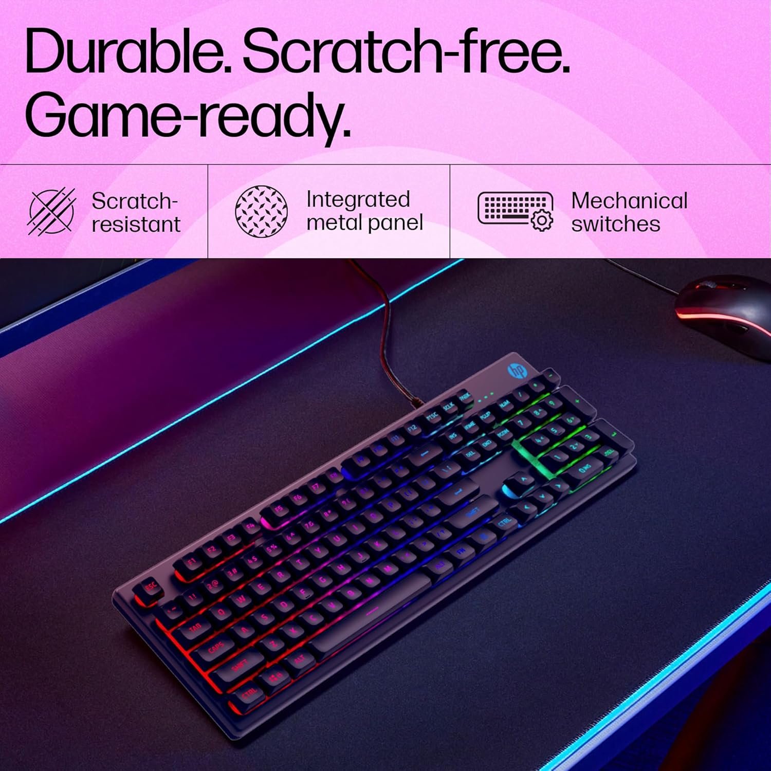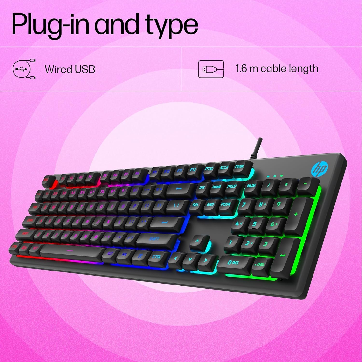 HP K500F Backlit Membrane Wired Gaming Keyboard with Mixed Color Lighting, Metal Panel with Logo Lighting, 26 Anti-Ghosting Keys, and Windows Lock Key / 3 Years Warranty(7ZZ97AA)
