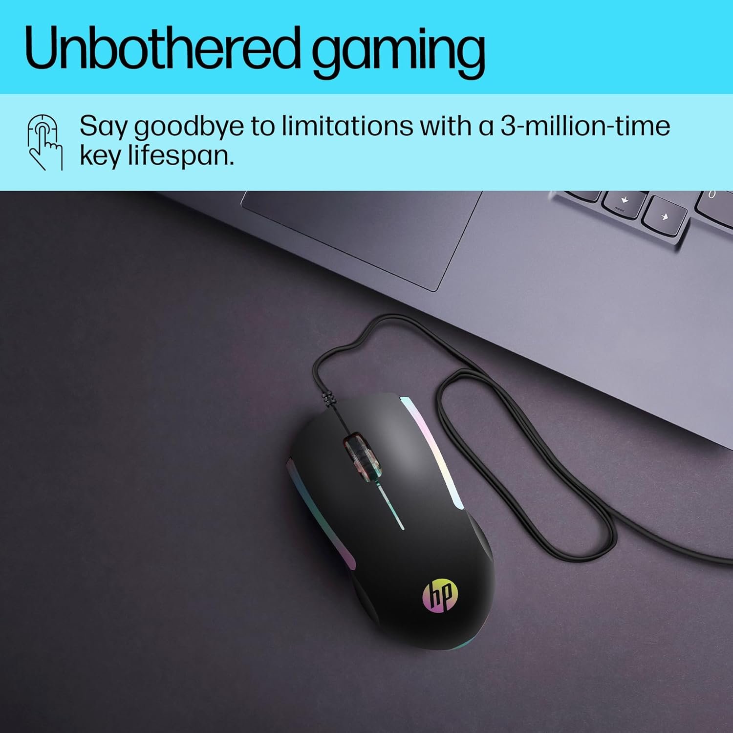 HP M160 USB Wired Gaming Optical Mouse with LED Backlight, 1000 DPI, 3 Buttons and Press Life Up to 3 Million Clicks, 1 Year Warranty (843W8AA, Black)