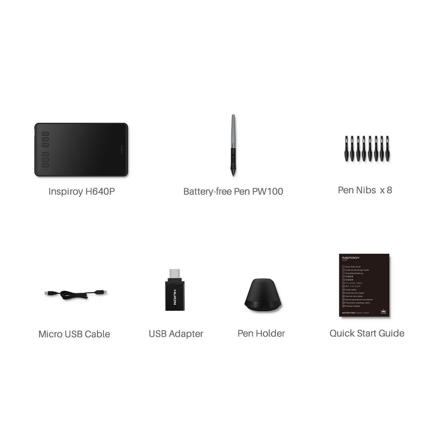 Support Linux/Mac/Windows/Android: Not only compatible with Linux, Mac and Windows, Huion H640P also supports Android 6.0 or later via an included OTG adapter to turn your phones or tablets into a digital drawing canvas.This easy-to-use pen tablet is perfect for kids and beginners for drawing,animation,photo-editing or design work in most programs including Adobe Photoshop, paint tool sai, illustrator, corel draw, corel painter, sketchbook, manga studio, clip studio paint and more.