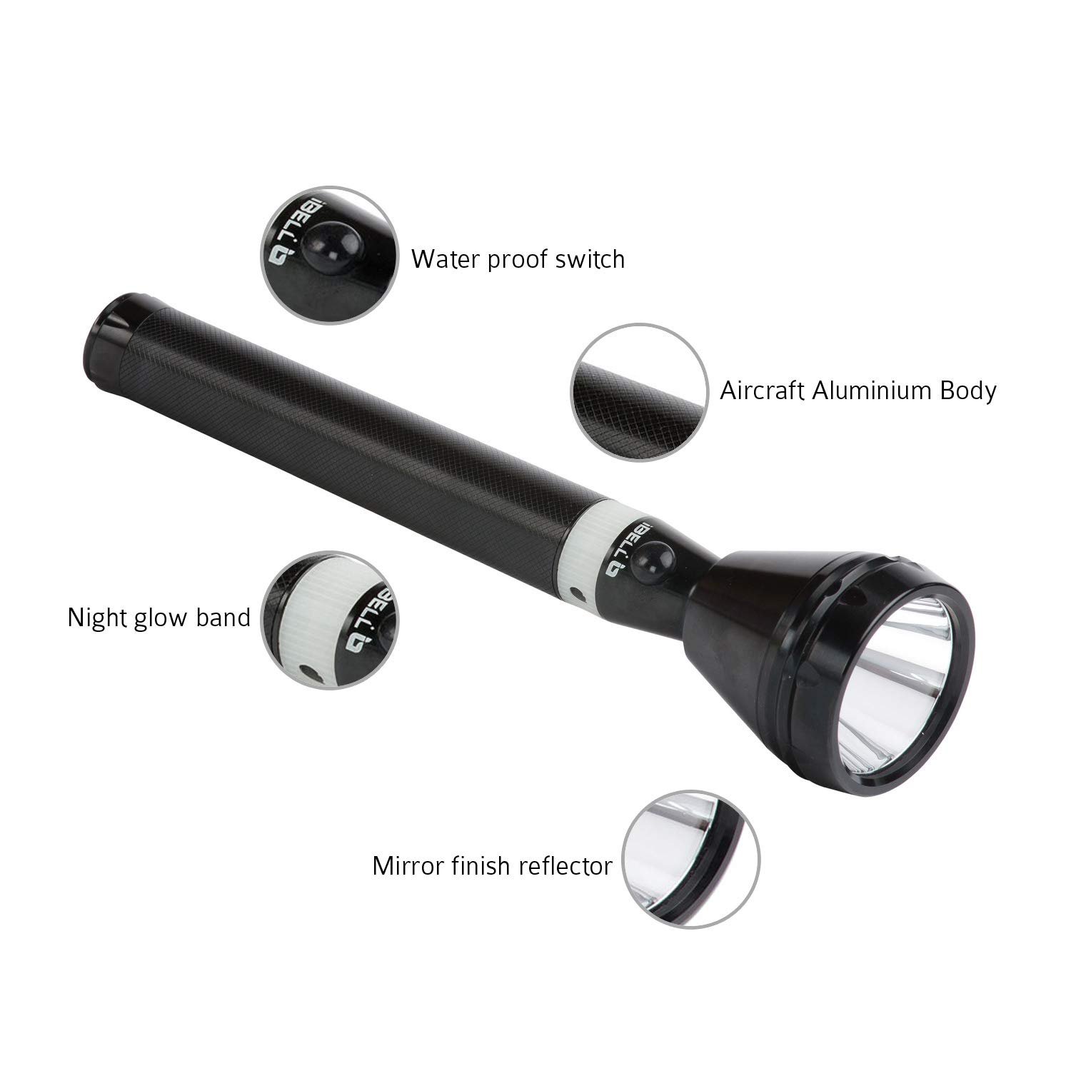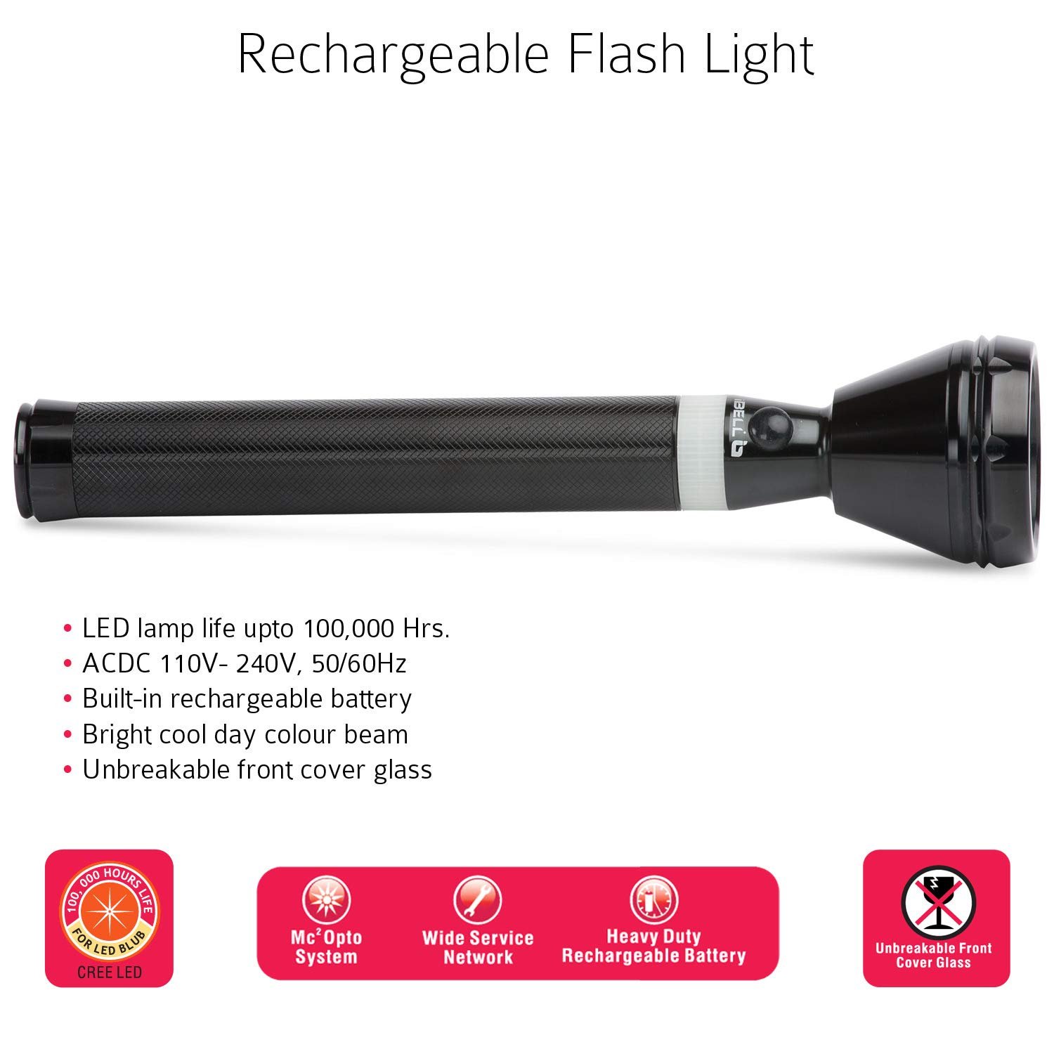 Highly Sturdy and Secure Aircraft Aluminium Body. LED lamp life up to 100,000 Hrs. Bright cool daylight