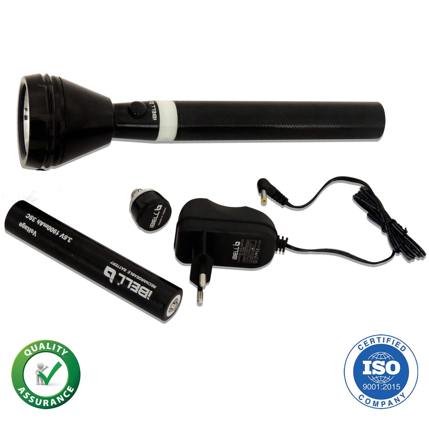 The LED flashlight is powered through battery which can be recharged along with the charger that comes along with it.