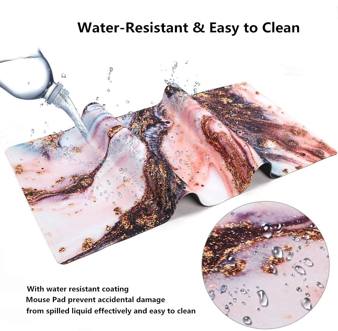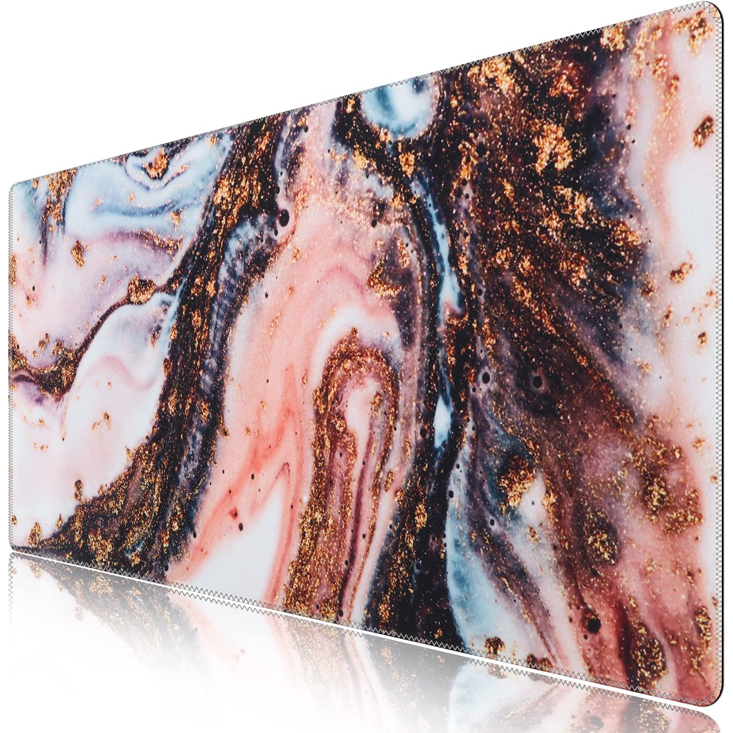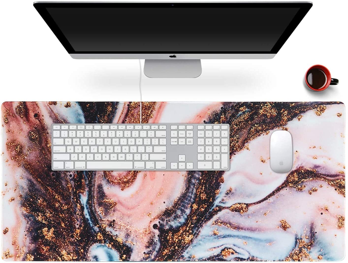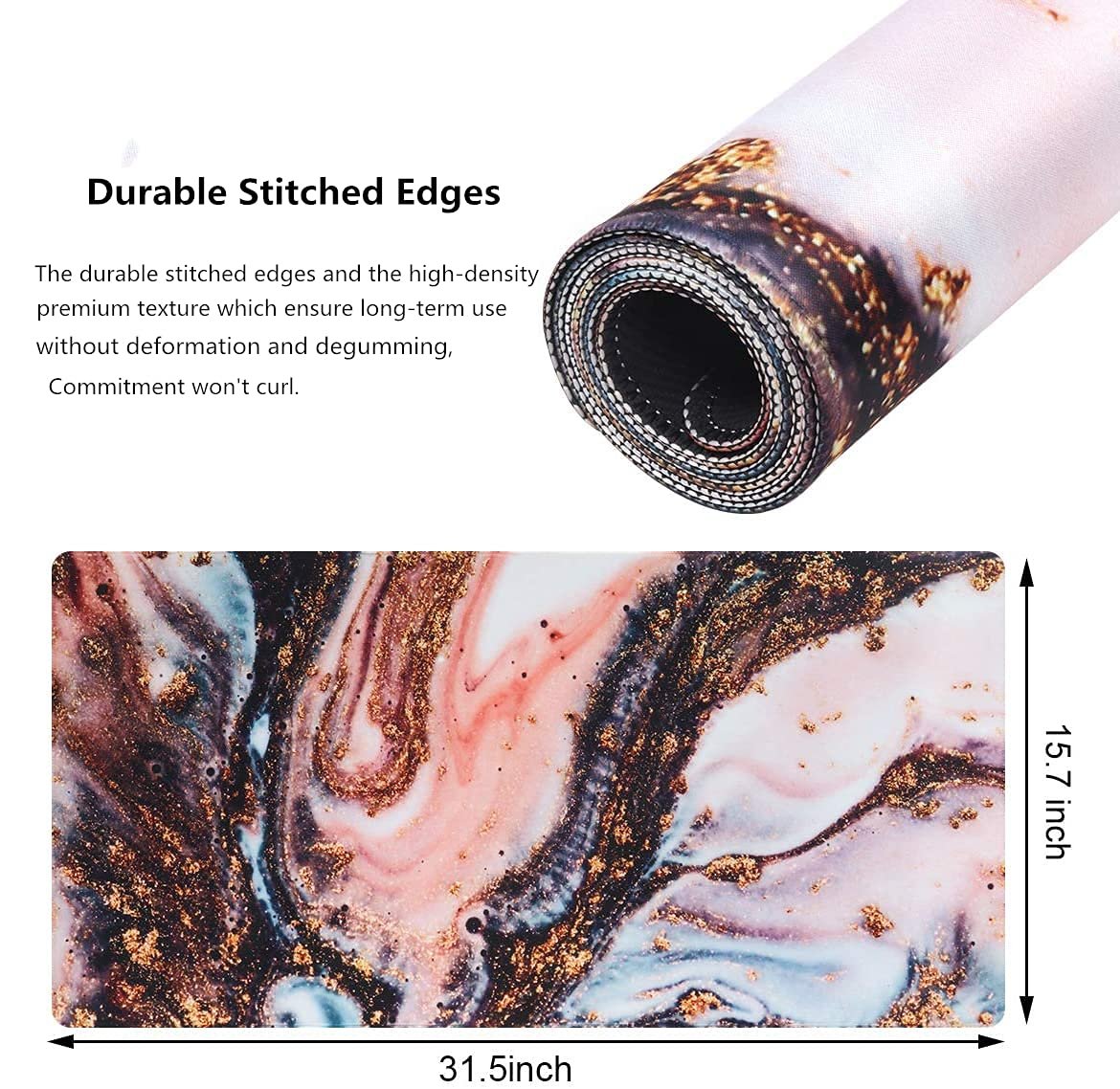 iCasso Desk Mat, Extended Gaming Mouse Pad (31.5×15.7 in), Large Non-Slip Rubber Base Mousepad with Stitched Edges, Waterproof Keyboard Mouse Mat Desk Pad for Work, Game, Office, Home – Gold Marble