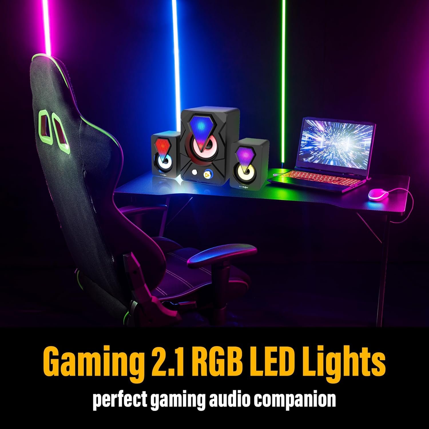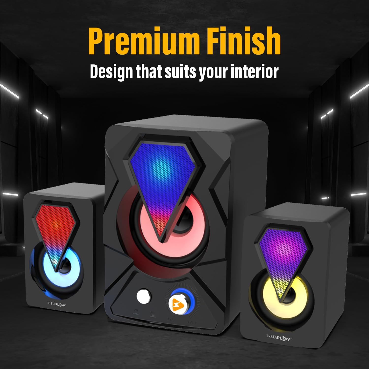 Dynamic RGB Lighting: Instaplay INSTA BLAST300 gaming speakers for pc with colorful RGB lights that enhance the music and game dynamics experience.The LED lights will automatically change color during use (The Light cannot be turned off) Note:The lights changing with the music freely,so you cannot sync it up to other RGB or hold it on a specific color