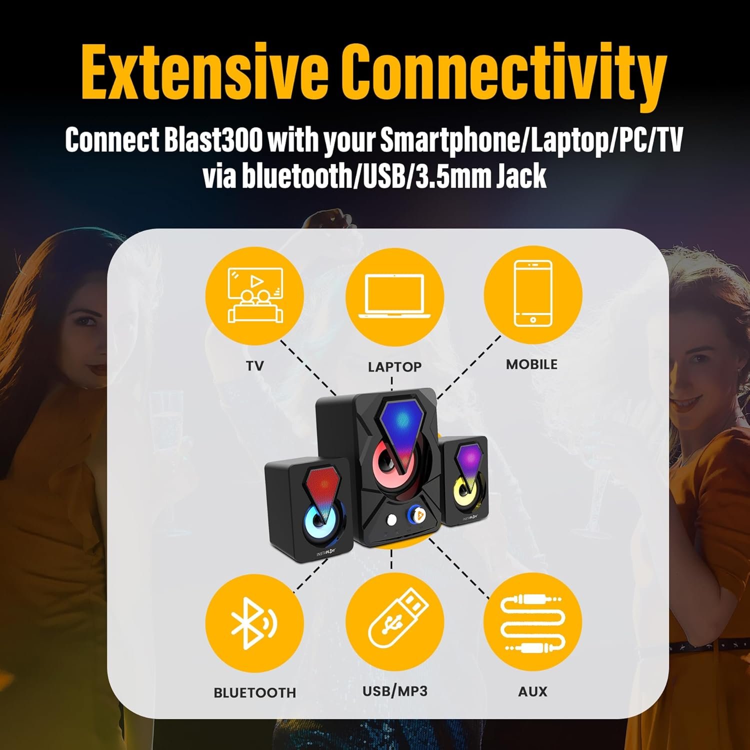 Clear Stereo Sound- Instaplay INSTA BLAST300 2.1 channel pc speaker uses upgraded 2x5W sound drive unit, deliver the crystal clear stereo sound and a 10W advanced subwoofer for thumpy bass effect. Perfect for listening to music, audio books, playing games and watching videos;Supports Bluetooth- Instaplay INSTA BLAST300 comes with latest Bluetooth inbuilt so you can connect it with Bluetooth also and play.