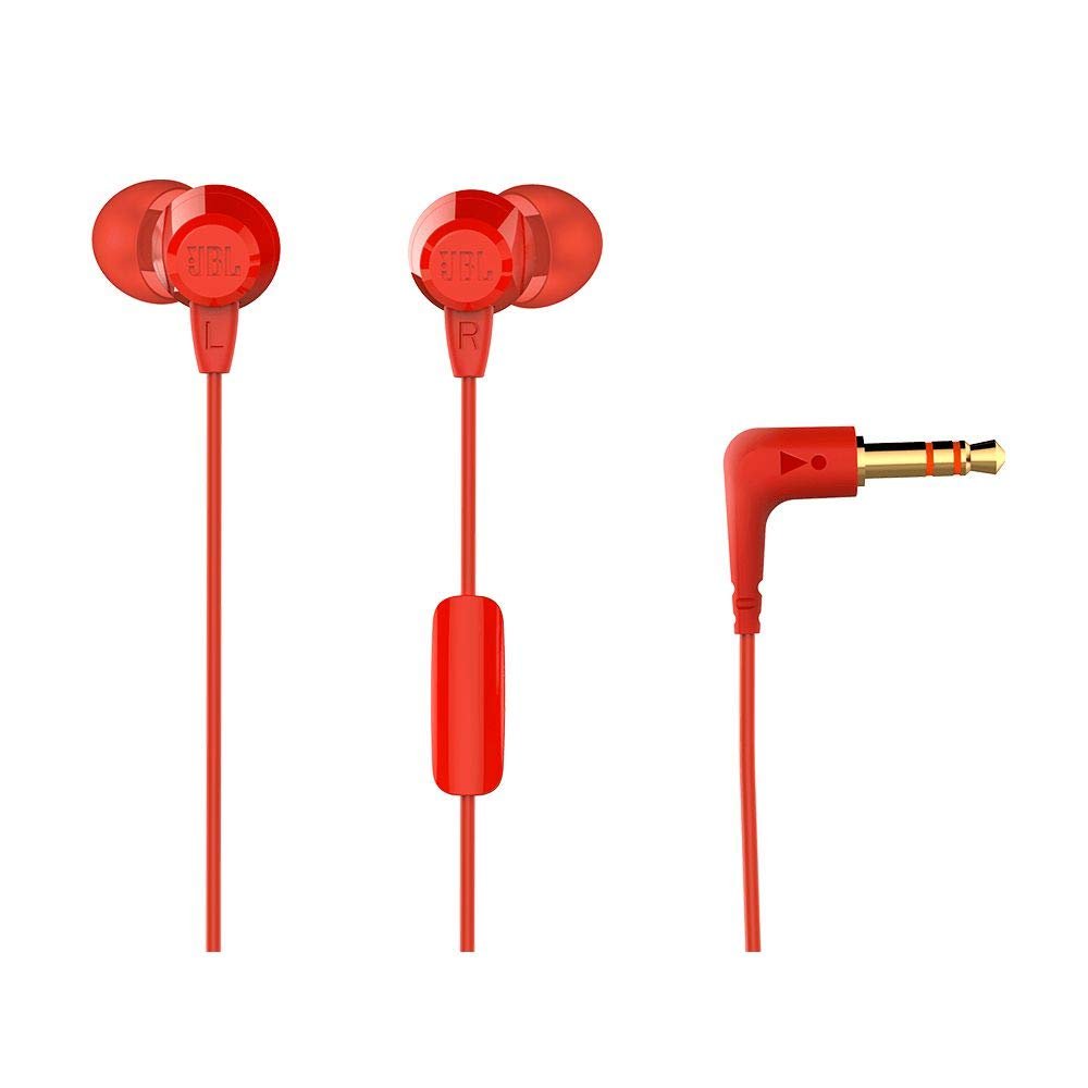 JBL C50HI, Wired in Ear Headphones with Mic, One Button Multi-Function Remote, Lightweight & Comfortable fit (Red)