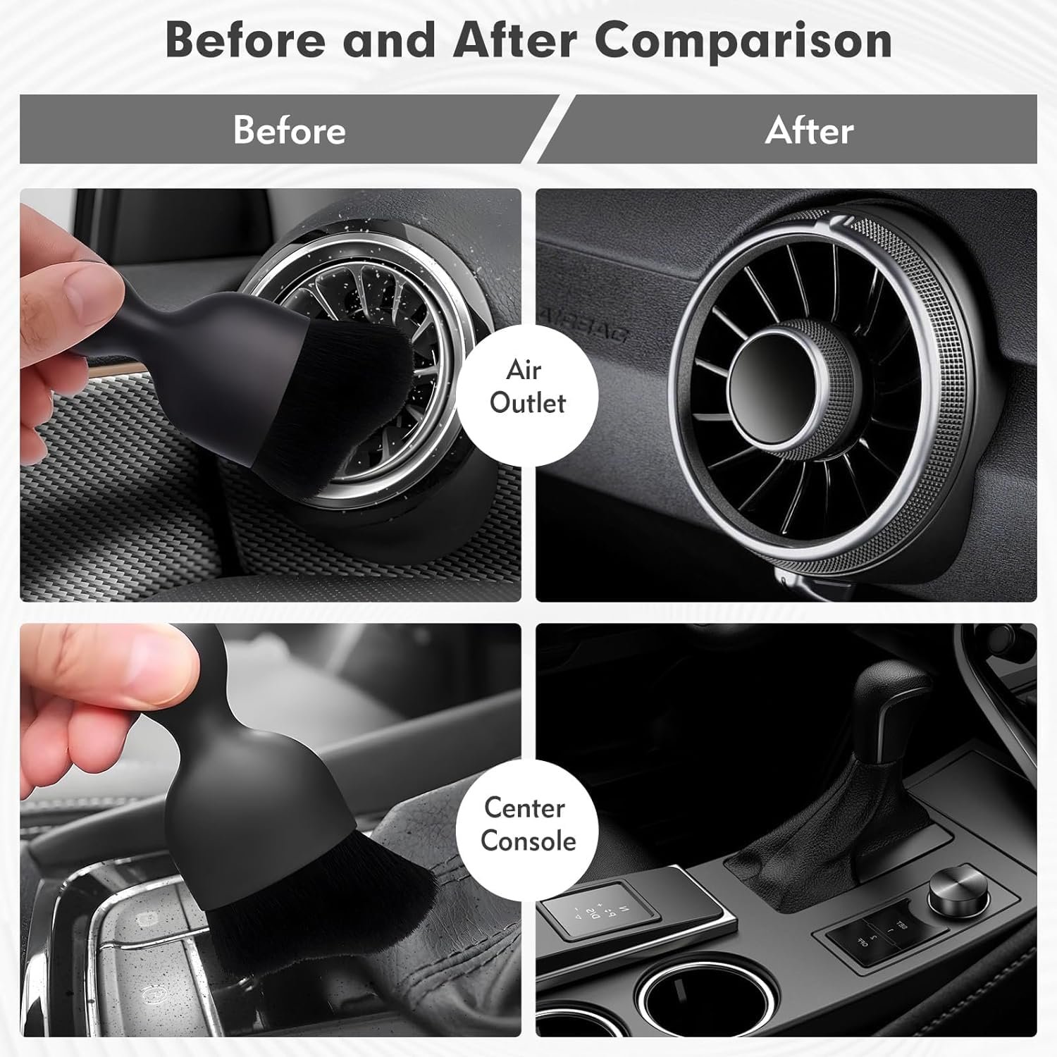 PERFECT SIZE: The brushes are designed with a beveled arc to keep your dashboard fast and dust-free, neither too big nor too small, and the perfect size to fit in the glove box. Save space in the car without cluttering up the space with too many tools.