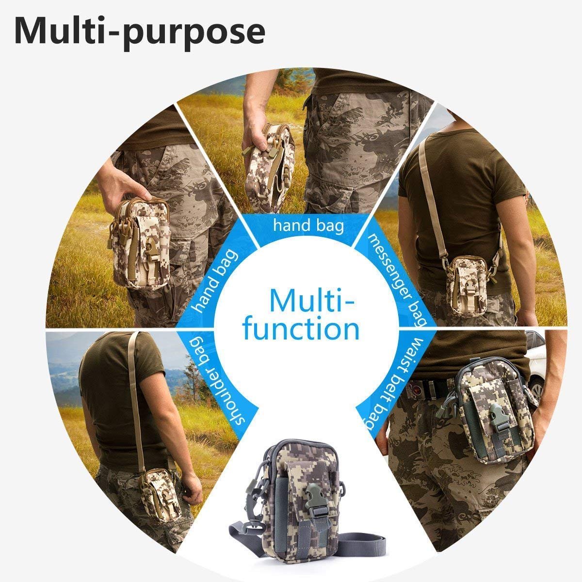 ✔ MULTI-FUNCTION DESIGN – This bag designed as a tactical camouflage bag that can be used as a small tactical EDC pouch, waist bag, gadget pouch, utility belt pouch, outdoor hiking pouch, or travel pouch and belt included.