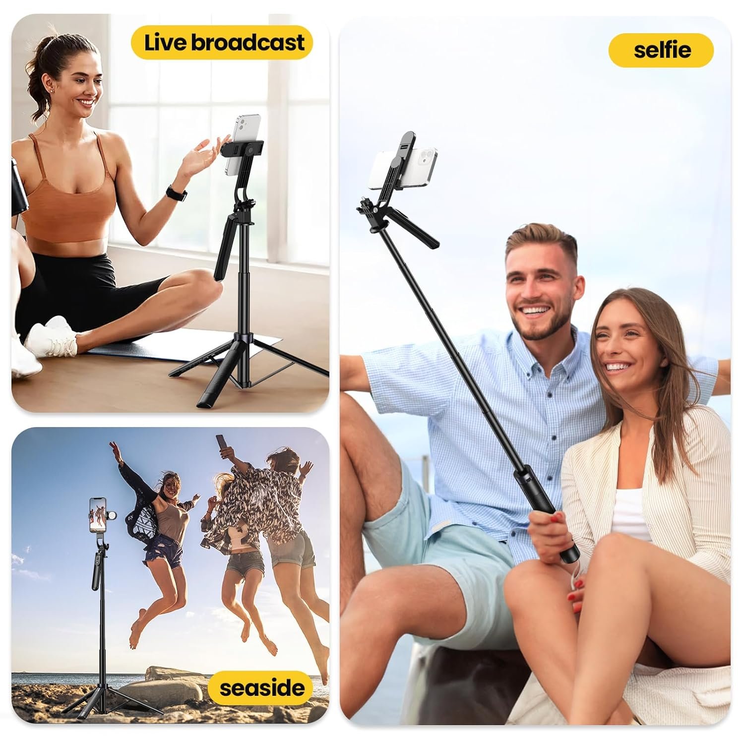 【Wide Compatibility & Multi-scene Use】Selfie Stick with Tripod Stand is compatible with various sizes of smartphones, such as iPhone, Samsung, Xiaomi, OnePlus, Vivo, Oppo, Honor. 1/4 Screw design for products with 1/4 screw connectors, such as GoPro, cameras, ring lights. Use for Vlogging, Live Streaming, Taking Photos, Video Shooting, Makeup, YouTube