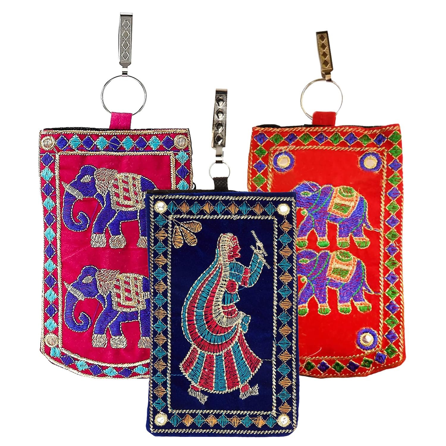 PACKAGE CONTAIN : 3 Piece Mobile Cover with Saree Hook | MATERIAL : Velvet | PACKAGE DIMENSION : 17 cm x 14 cm x 6 cm
