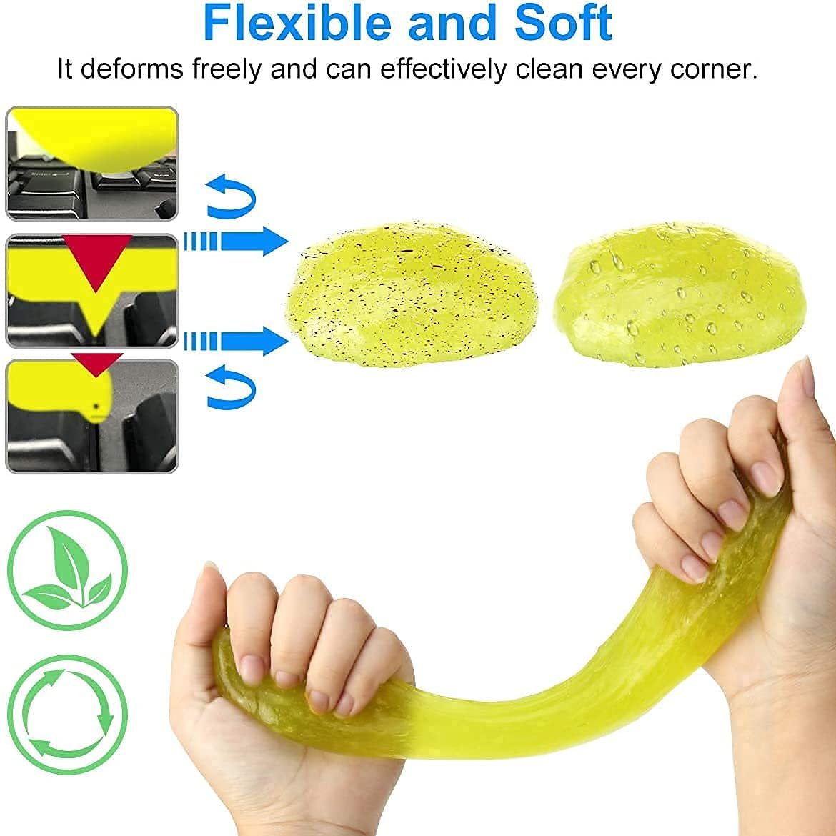 [SAFE & DURABLE]: Made of Reusable Biodegradable Gel, Not Stimulation to Skin, friendly to the environment, not sticky to hand.The light fragrance is very fresh and not pungent. Cleaning gel removes all dust and debris and leaves no residue.