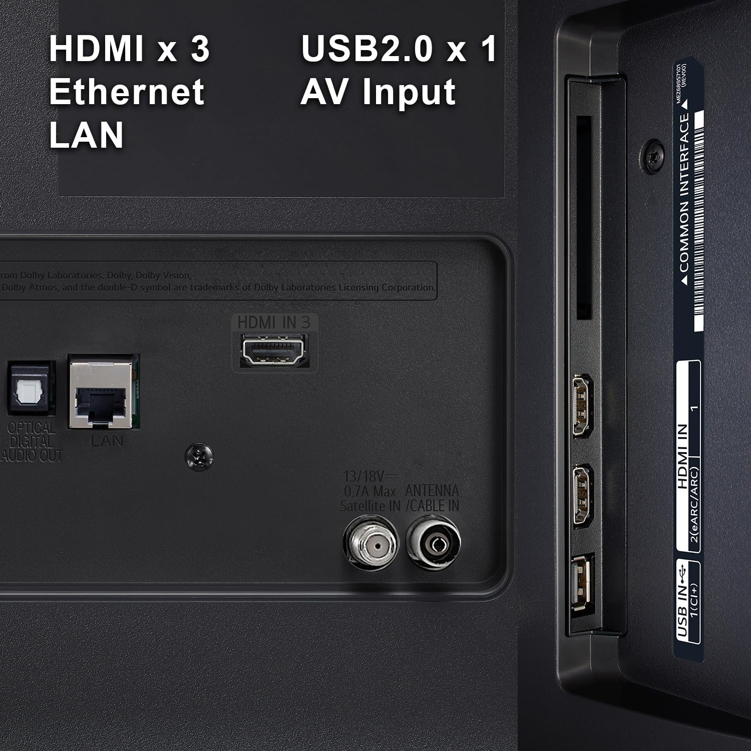 Connectivity: Wi-Fi (Built-in) | 3 HDMI ports to connect set-top box, Blu Ray players, gaming console | 2 USB ports to connect hard drives and other USB devices | eARC | Bluetooth 5.0 | Optical | Ethernet
