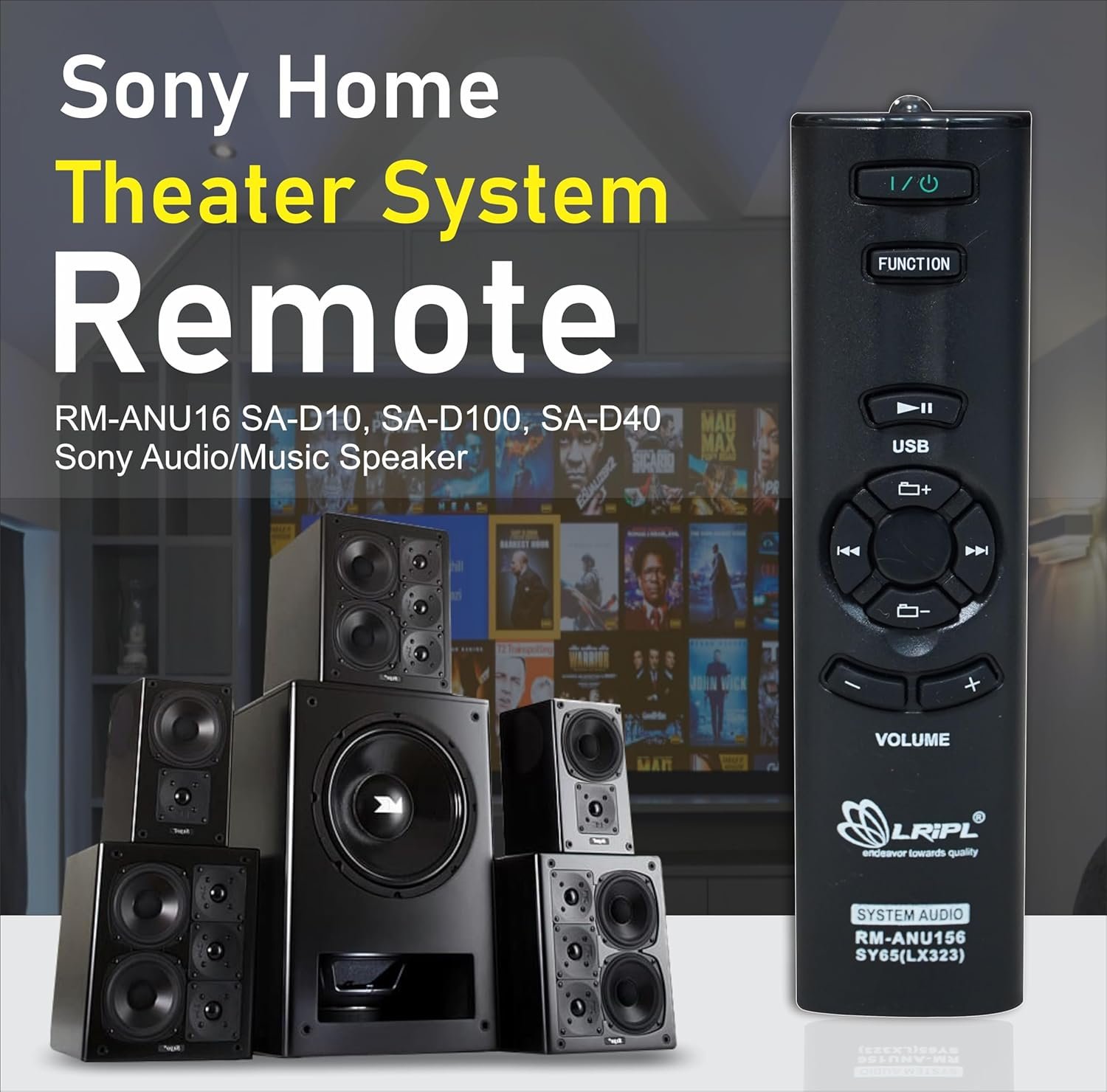 LRIPL RMU-156 compatible remote for Sony SA-D10 SA-D100 SA-D40 Audio/Music System Universal configuration works with all of Sony Audio/Music System . Best Quality Plastic Body and Soft Rubber Keypad. Best quality Remote for your Sony 4.1 Channel Home Audio Speaker.