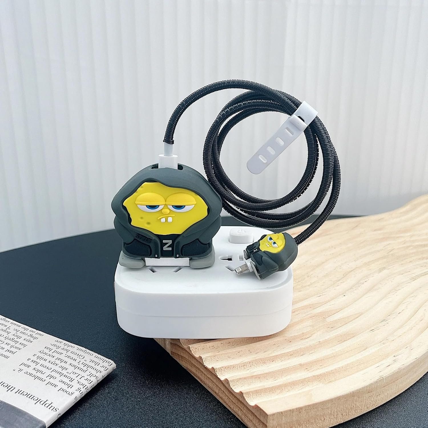 Meyaar Silicone Case for Apple 20W USB-C Power Adapter Protective Cover for Apple iPhone Charger 20W/18W Adapter with Wire Saver (Charger Not Included) (Sponge-BOB)