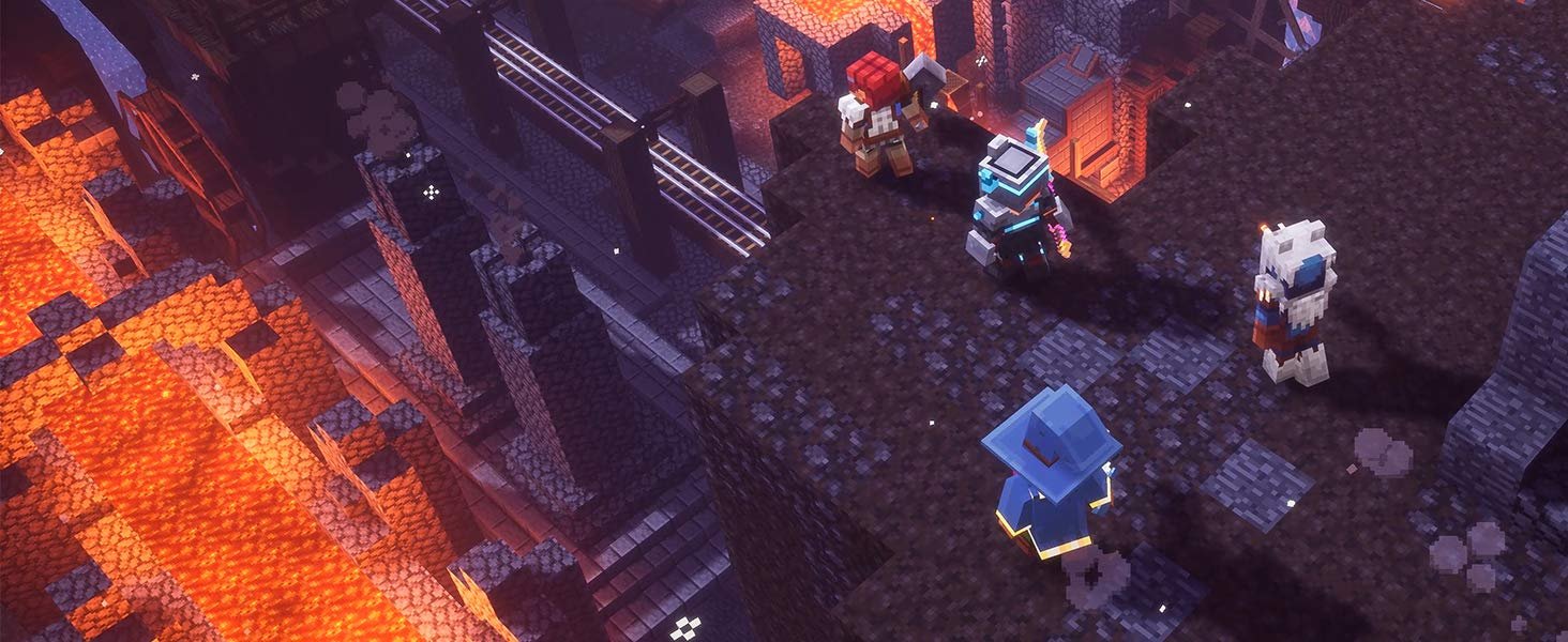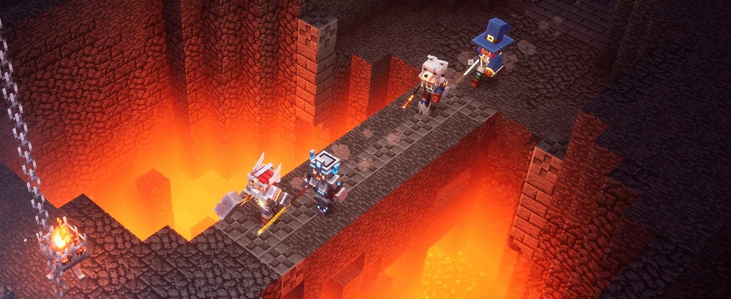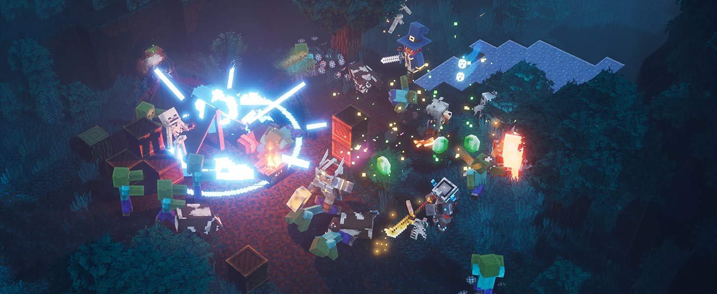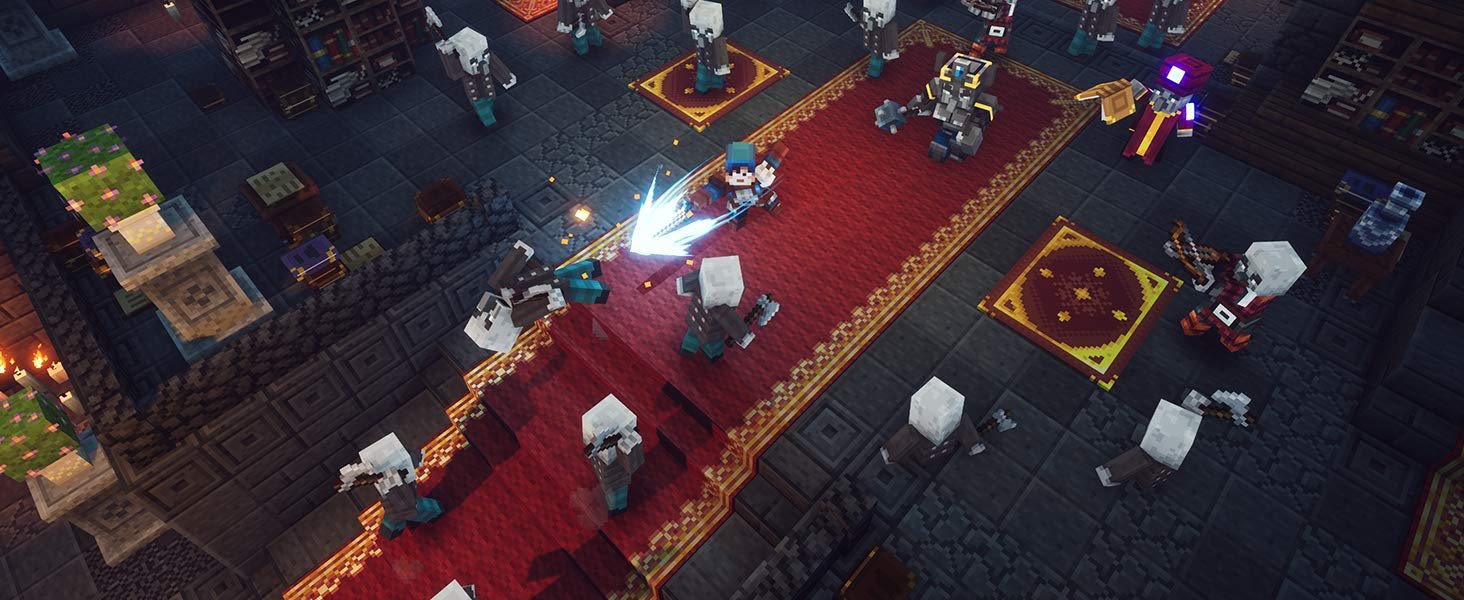 UNITE. FIGHT. SURVIVE. Xbox One And Xbox Series X Fight your way through an all -new action-adventure game, inspired by classic dungeon crawlers and set in the Minecraft universe! Up to four friends can play together,or you can brave the dungeons alone. Battle new-and-nasty mobs across action-packed, treasure-stuffed, wildly varied levels, all in an epic quest to defeat the evil Arch-lllager! Hero Cape 2 Player Skins Chicken Pet Jungle Awakens DLC Creeping Winter DLC