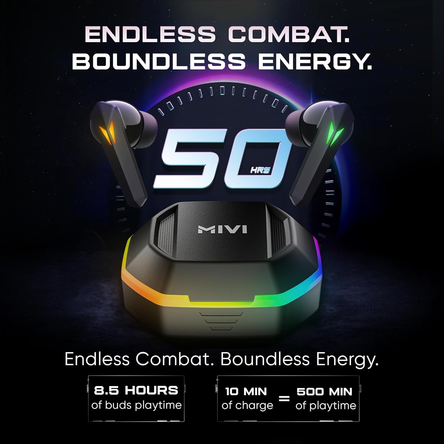 ✅ 50 Hours of Combined Playtime: The Swift Charge Technology comes with Type C charging allowing you to get 500 mins of playtime in just 10 minutes of charging.