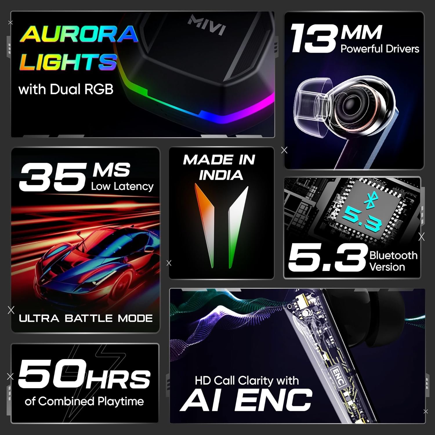✅ Call Clarity: The gaming ear buds are powered by AI ENC to eliminate environmental noise thus helping you deliver clear messages on calls and in multiplayer gaming.