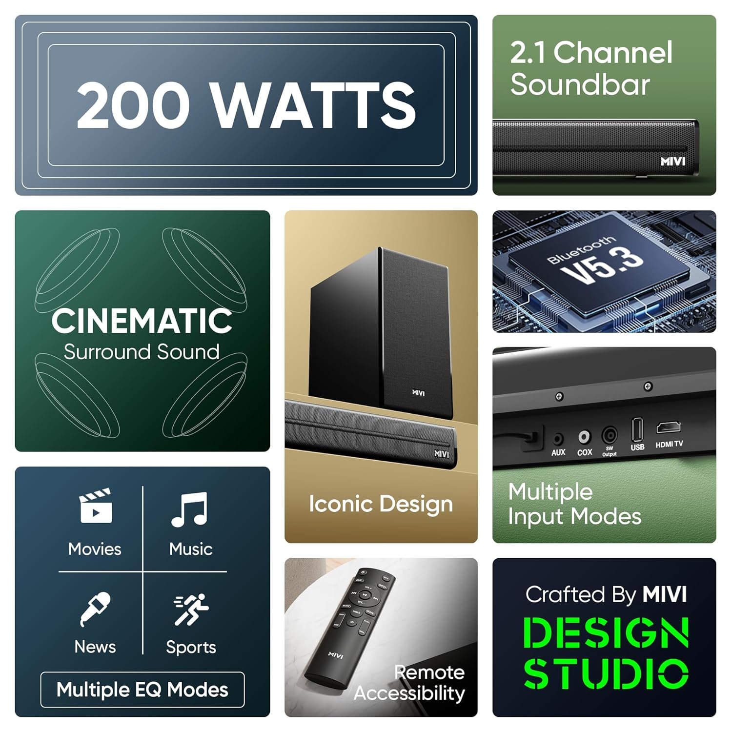 Bass and Sound: Get powerful sound in every beat with 200 watts of cinematic bass.