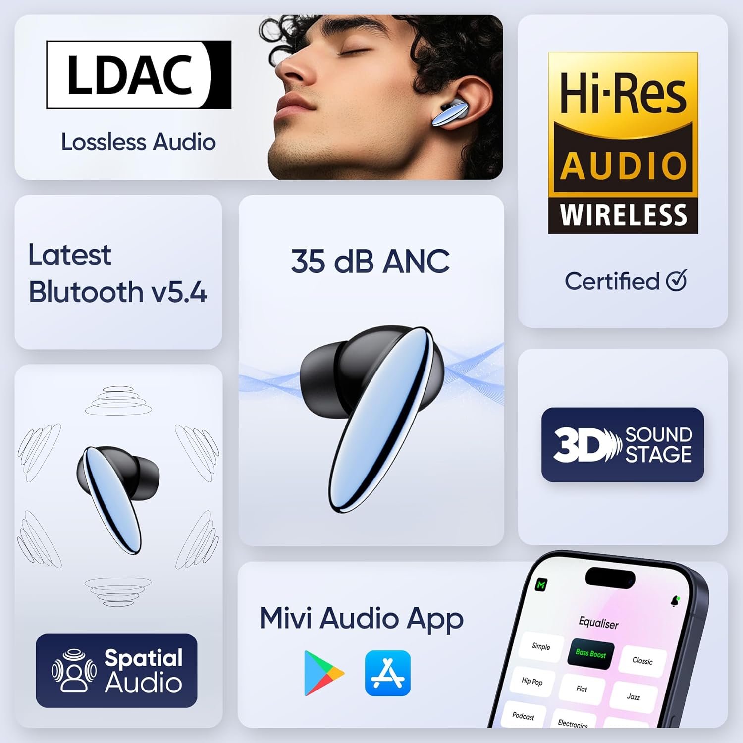 Hi-res Audio: Level up your audio game from HD to Ultra HD with Hi-res Audio. It is an advanced audio tech with sampling rate and bit depth higher than standards audio that lets you experience the minutest of detail in music as intended by the composer.