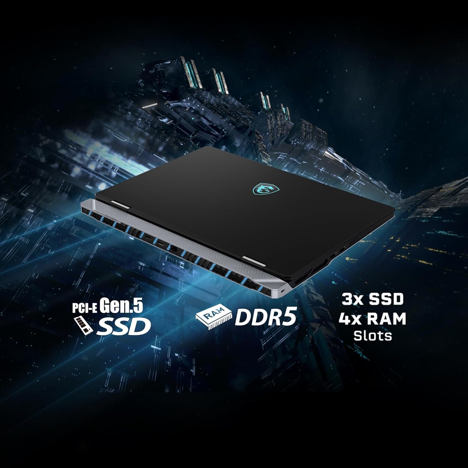 The Titan 18 HX features 4 DDR5 memory slots for up to 192GB expansion and 3 M.2 SSD slots (1 PCIe Gen5, 2 PCIe Gen4) for high-speed, ample storage. Its powerful hardware, integrated into a sleek chassis that is less than an inch thick, enhances mobility, making it more efficient and versatile.