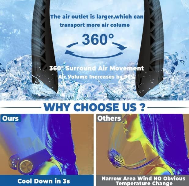 This portable fan wearable design allows you to truly free your hands and enjoy the cool wind anytime, anywhere. Best friend for work, office, life, sports, travel, hiking, cycling, etc. It can also be used as a gift for Mother’s Day and Father’s Day!