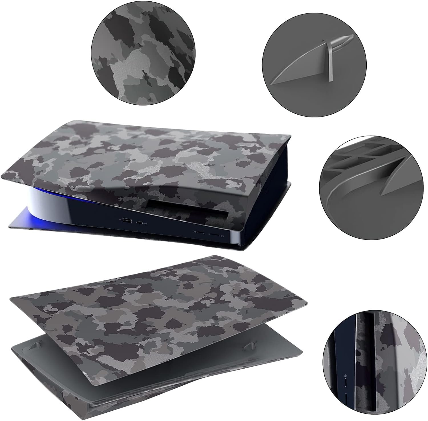 Face Plate Cover Shell for PS5 Disc Edition Console Faceplates, Playstation 5 Accessories Protective Replacement Panels (Gray Camouflage)