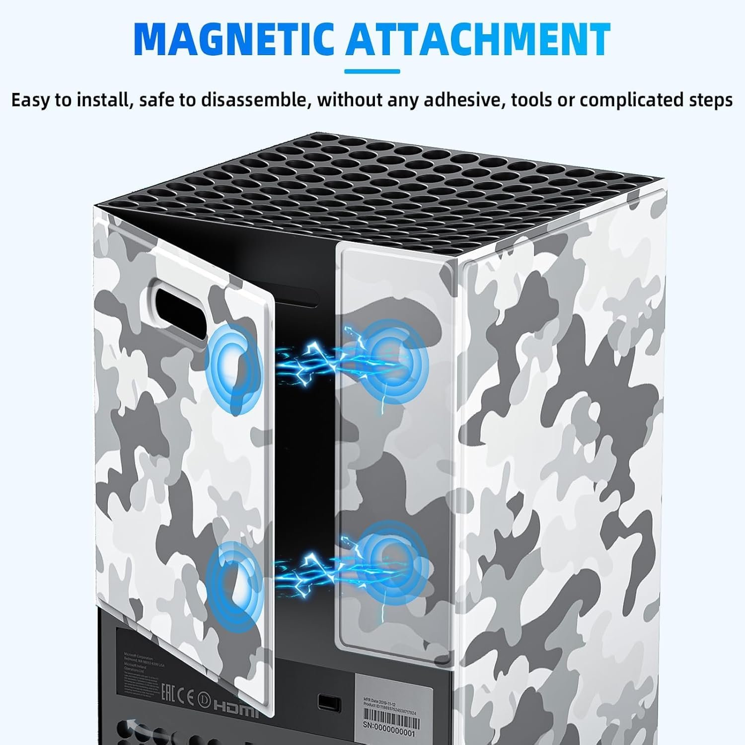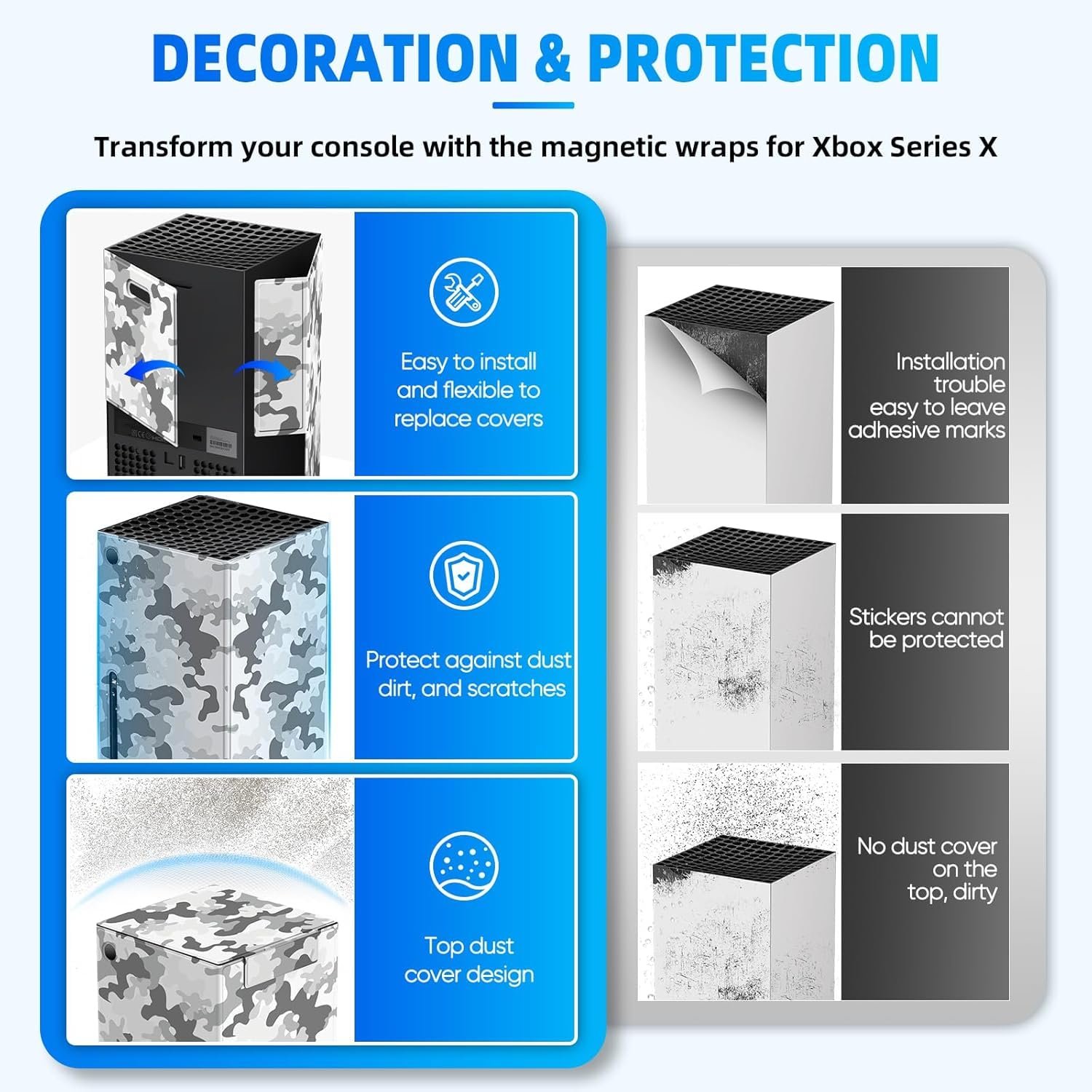 【Magnetic Attachment for Easy Installation】Our cover wraps for Xbox Series X console feature a convenient magnetic closure design, making it incredibly easy to install. Simply align the wrap and top cover with your console and let the magnets do the rest. No any messy adhesive, tools or complicated steps required.