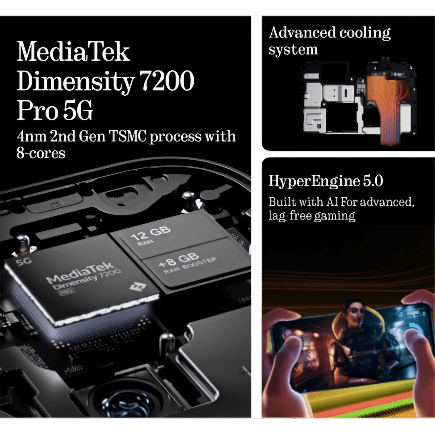 ☆【Processor】:- Dimensity 7200 Pro Processor || Custom Mediatek Dimensity 7200 Pro Processor, Phone (2a) is fuelled by the custom Dimesity 7200 Pro chipset. Co-engineered between Nothing and MediaTek to deliver the best performance with optimal power consumption. Do more whilst using less thanks to game-changing efficiency from the 8-core 4nm TSMC 2nd Generation process, with clocking speeds of up to 2.8 GHz for multi-tasking to the max. Plus get up to 16 GB RAM with 8 GB RAM Booster.