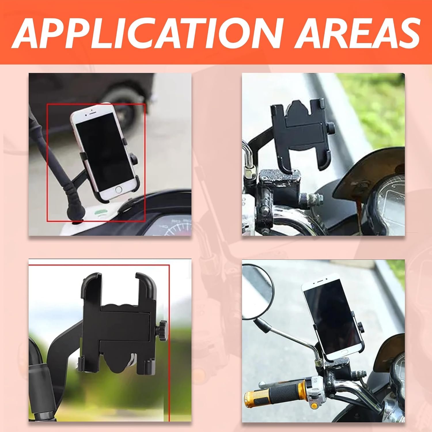 FEATURES:-, IPX6 Grade Waterproof, 360° Rotation Easy Adjustment, 4-6 Inch Screen Mobile Phone Can Be Flexibly Adjusted, Comes With Installation Tools.
