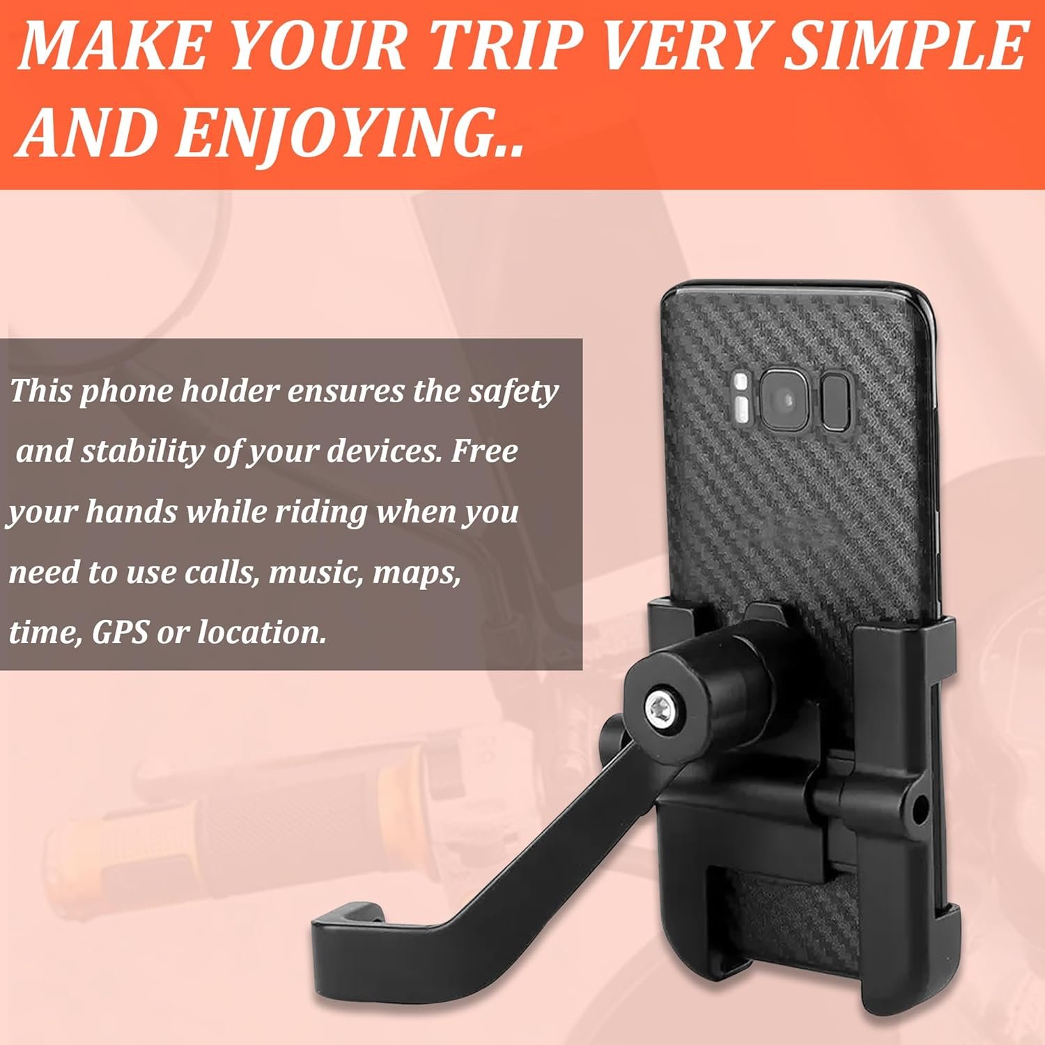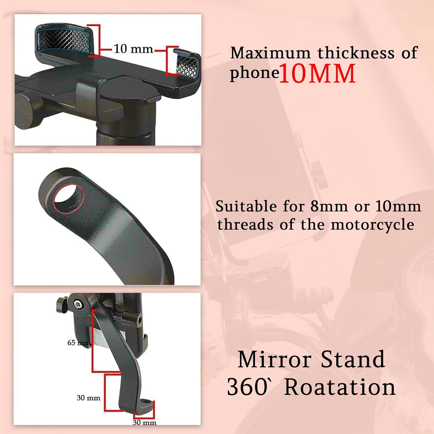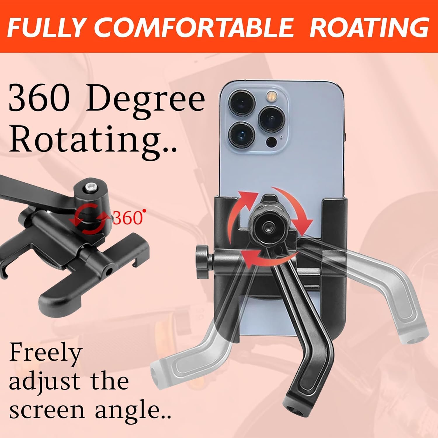 360 Degree Rotation :- 360° Rotatable Design To Make Your Mobile Freely Adjusted To Any Angles Mobile Width Adjuster Screw Nut On Mobile Rack Side To Make The Handlebar Mobile Holder