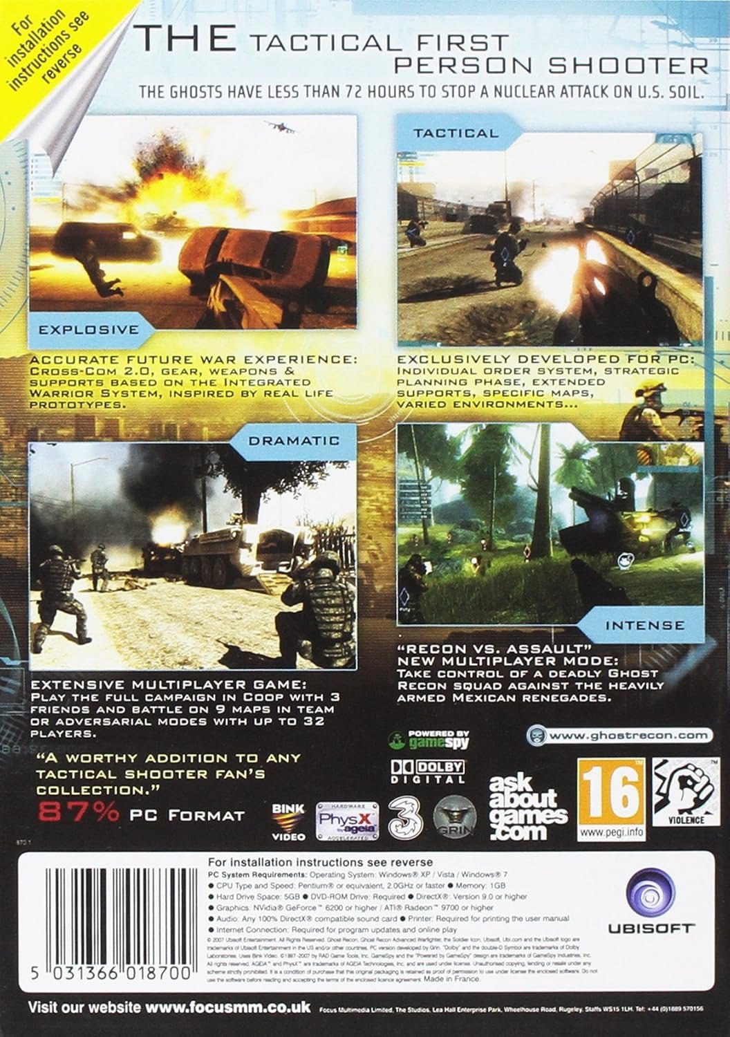 Tom Clancy’s Ghost Recon Advanced Warfighter 2 builds on the events of the first hit game, for an all-new tactical combat experience. In the year 2014, rising conflict between Mexican loyalists and insurgent forces throws Mexico into full-scale civil war. Under the command of Captain Scott Mitchell, the Ghosts are called upon to face an imminent threat to the United States. The fate of two countries now lies in the hands of the Ghosts as they fend off an attack on U.S. soil. Equipped with the most cutting-edge weaponry and technology, the Ghosts must battle on both sides of the border. New Full Command View will allow unprecedented precision in developing and issuing tactical plans on the battlefield Vastly Improved Artificial Intelligence (AI) – Watch your back as rebels send their own team members to flank your position or gain vantage points by utilizing vertical gameplay to pick you off from the rooftops above