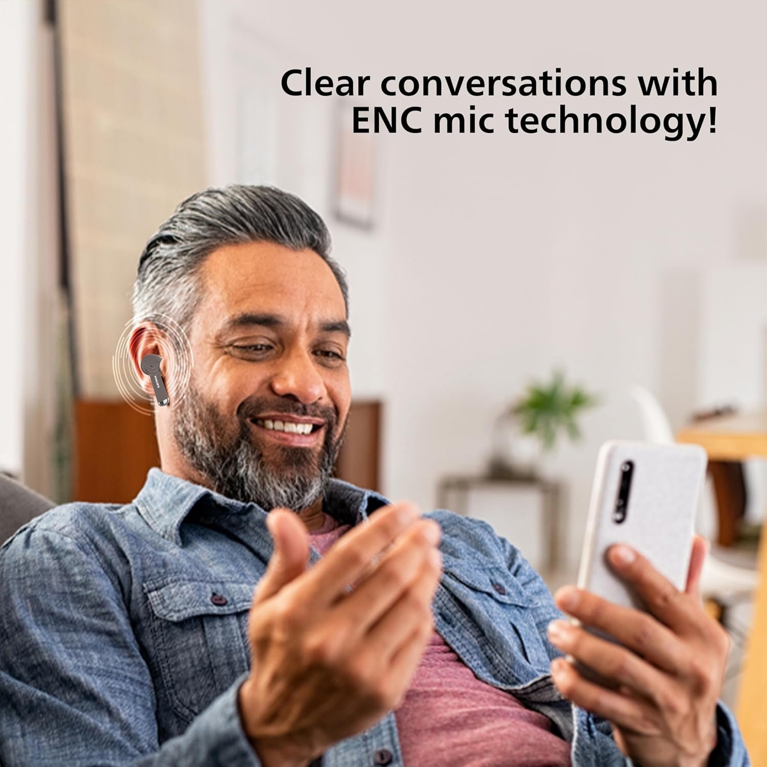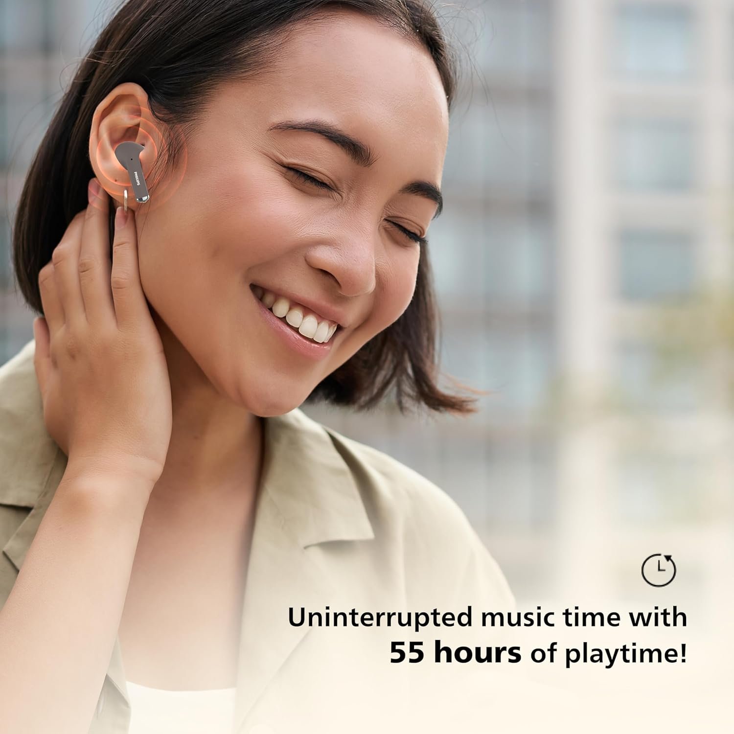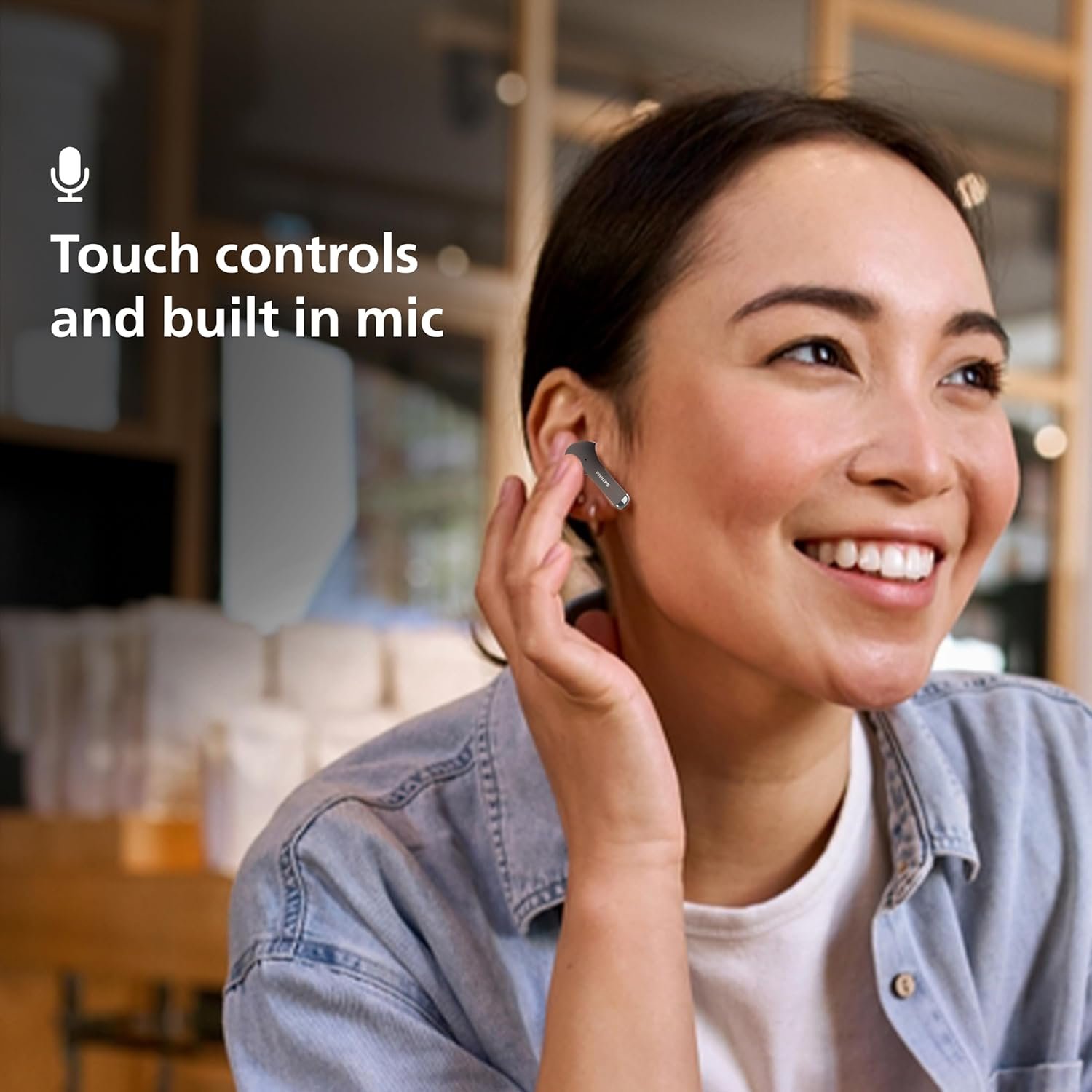 Experience the simplicity of great sound with the Philips TAT1169BN/94 true wireless earbuds. Designed for comfort and convenience, they come with a pocket-sized charging case that offers up to 55 hours of playtime. Enjoy warm, natural sound with deep bass from 12 mm drivers and a dynamic bass boost function. The earbuds feature interchangeable silicone tips for a perfect fit and on-ear touch controls for easy use. With a solid Bluetooth connection, clear call quality, and IPX4 splash and sweat resistance, they are perfect for all-day wear. Compact, comfortable, and packed with value—these earbuds make every moment sound amazing