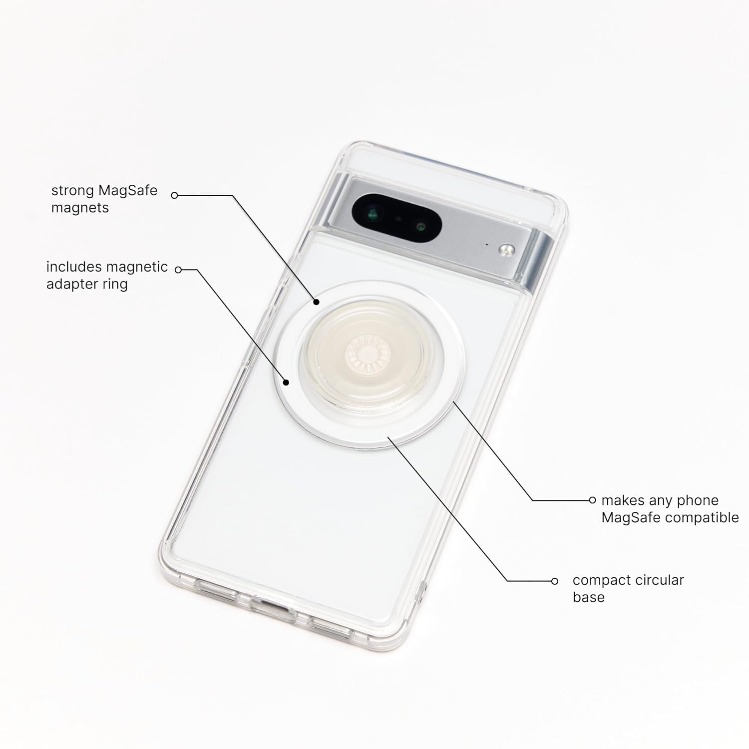 One Grip Fits All: Upgrade your Android, Samsung, Google Pixel, Kindle, or legacy iPhone device using the included Magnetic Adapter Ring. Adapter Ring works on most cell phone cases. Not compatible with silicone, textured or anti-fingerprint coated cases.