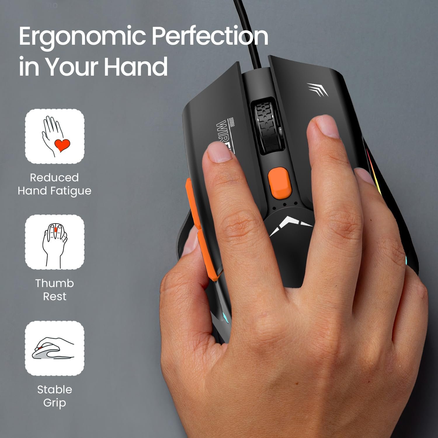 Ergonomic Comfort with Thumbrest: No more fatigue during extended gaming sessions. This mouse has an ergonomic design providing the perfect grip for your hand along with a special thumb rest, for the ultimate comfort.