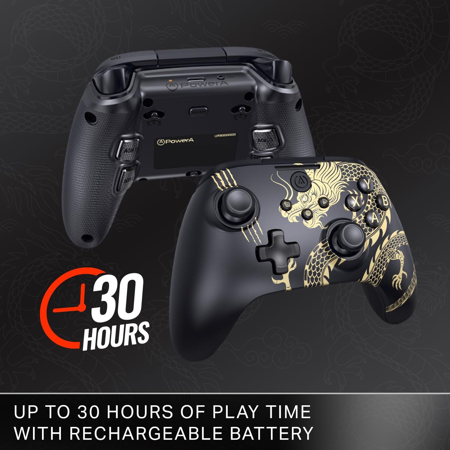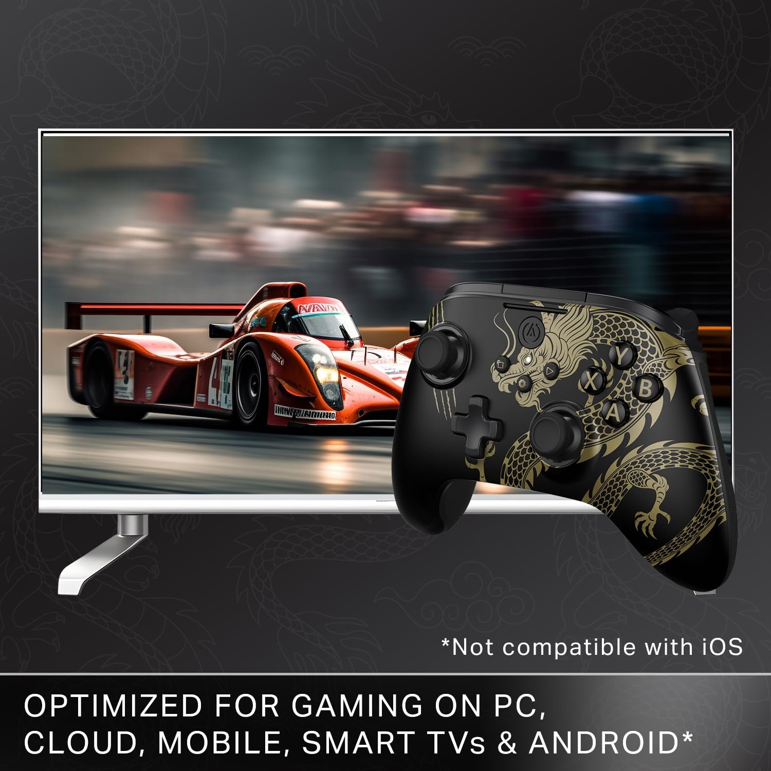 Dominate your opponent with the PowerA Battle Dragon Wireless controller for PC and Cloud gaming. You can choose between low-latency wireless connectivity on PC with a 2.4GHz USB adaptor, wired with the included USB-C cable or enjoy the flexibility of Bluetooth to game on Android, Tablet or Smart TVs. The Battle Dragon Wireless controller is equipped with magnetic Hall effect triggers for a smoother pull and reliable precision than contact-based triggers. Gain an edge with high-performance features like 3-way trigger locks, 4 mappable Advanced Gaming Buttons, and a programmable Turbo Button. This feature packed controller also includes a rechargeable battery and app support to fine-tune your controller settings.