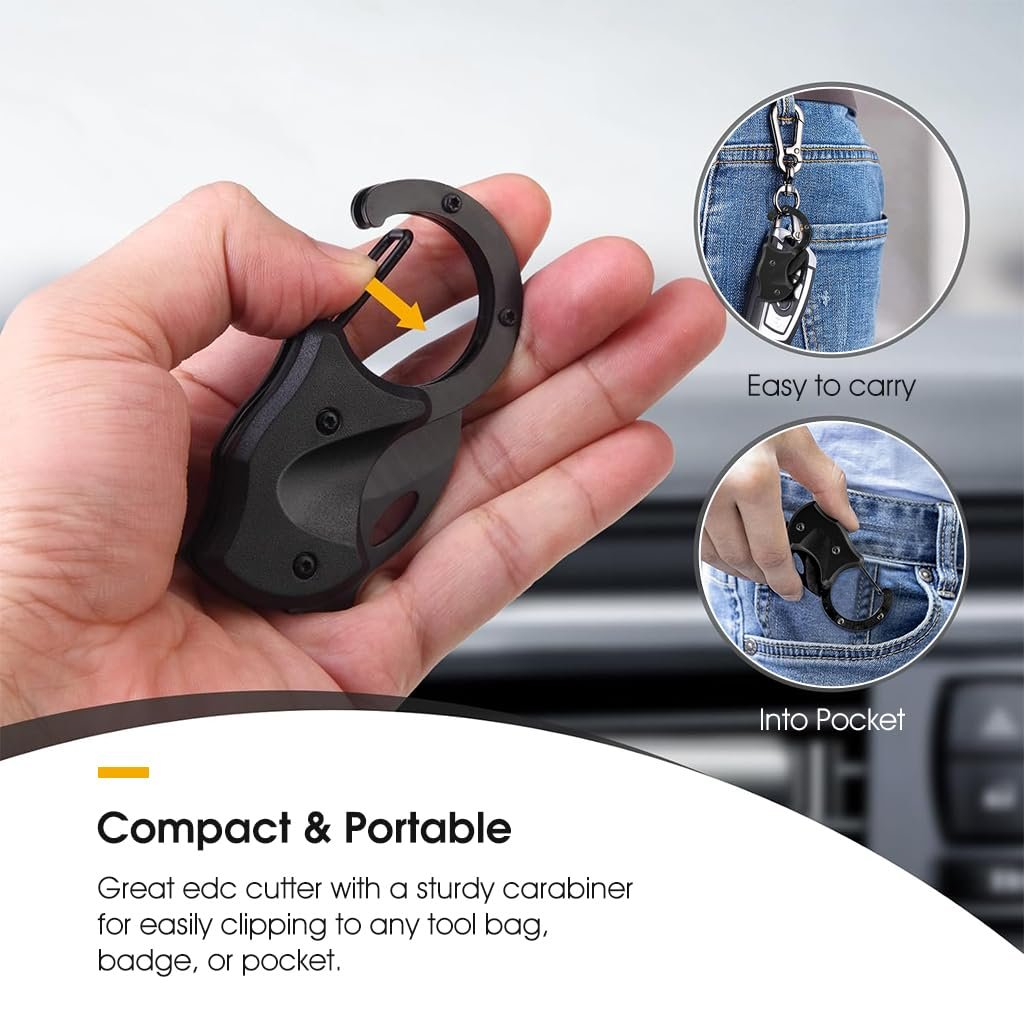 QUICK RELEASE CARABINER: Designed with convenience in mind, this mini cutter features a quick release carabiner. This allows for easy attachment to keychains, belts, or backpacks, ensuring you always have your utility cutter within reach.