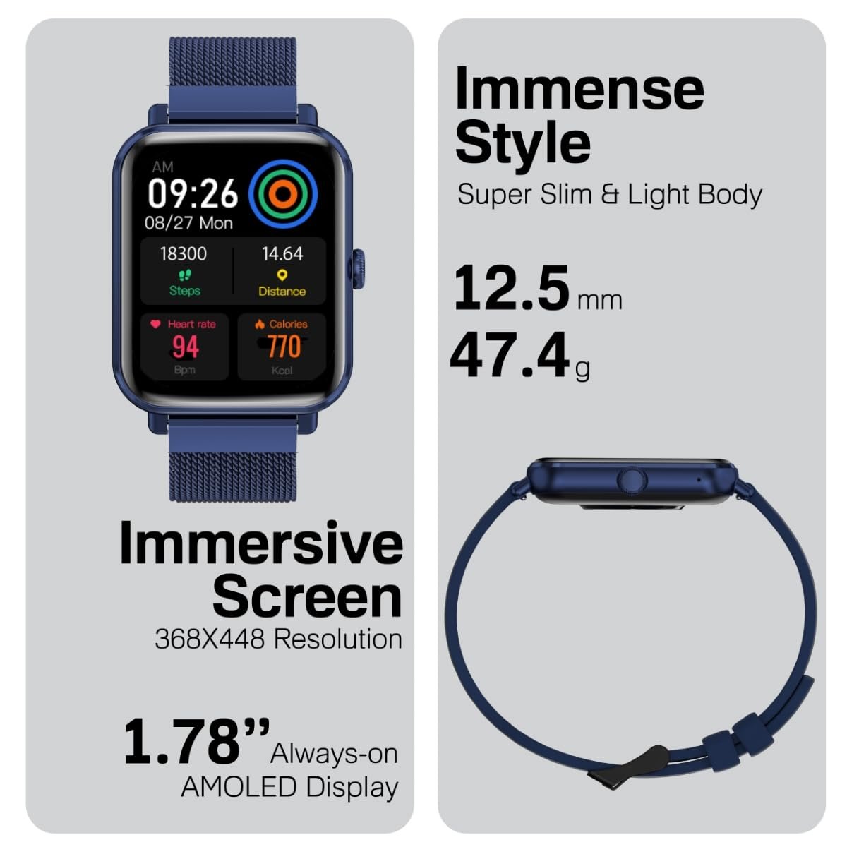 1.78” AMOLED Display – The ProWatch-M18 features a 1.78″ AMOLED display with a premium 368×448 pixel resolution, ensuring stunning visuals and an always-on display for convenient viewing.
