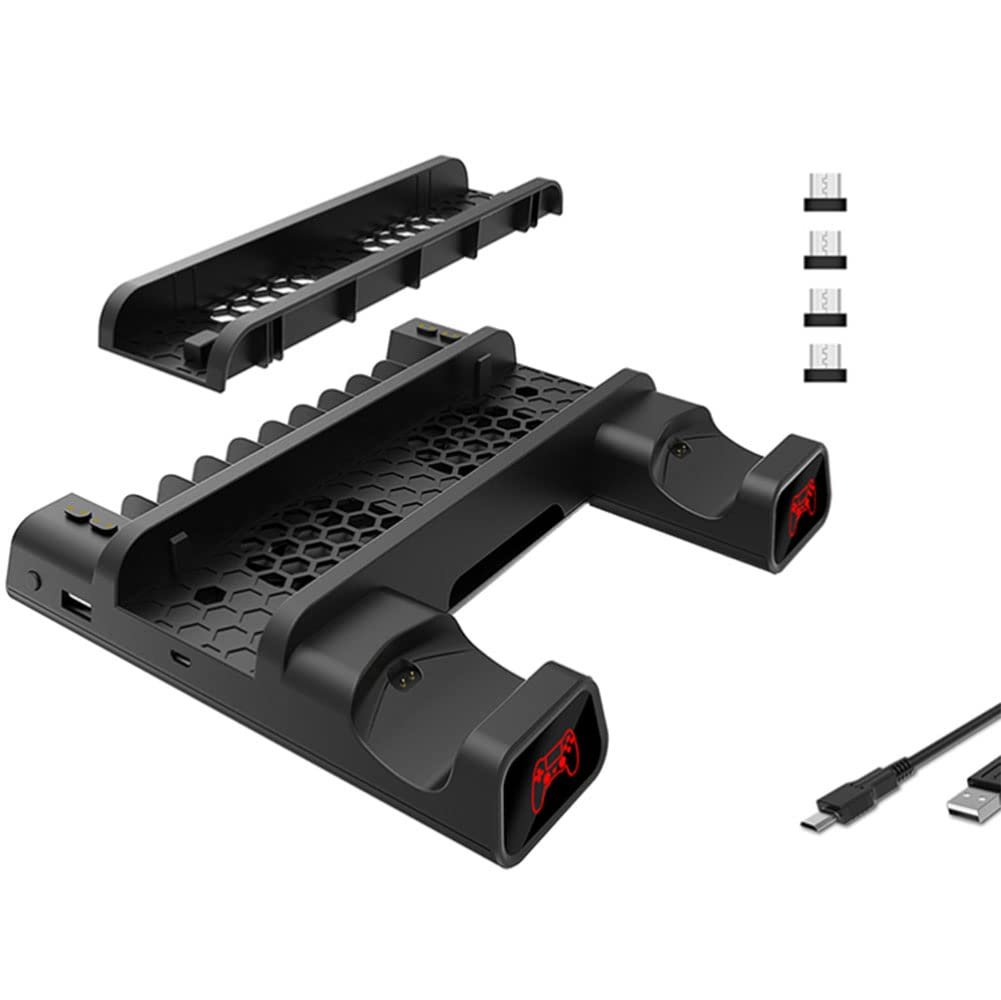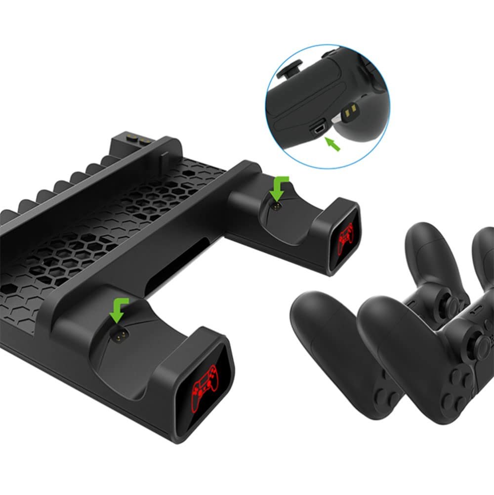 World PS4/ PS4 Slim/ PS4 Pro Multifunctional Vertical Stand Cooling Fan Stand, PS4 Controller Charger with LED Indicators,Charging Dock Station with 12PCS Games Storage forPlaystation 4 PS4,PS4 Slim,PS4 Pro Console