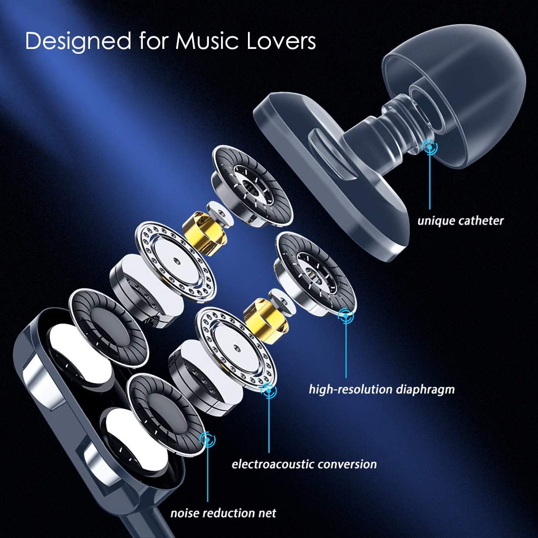 In-ear Dual Driver Wired Earphones with Stereo Sound & Bass